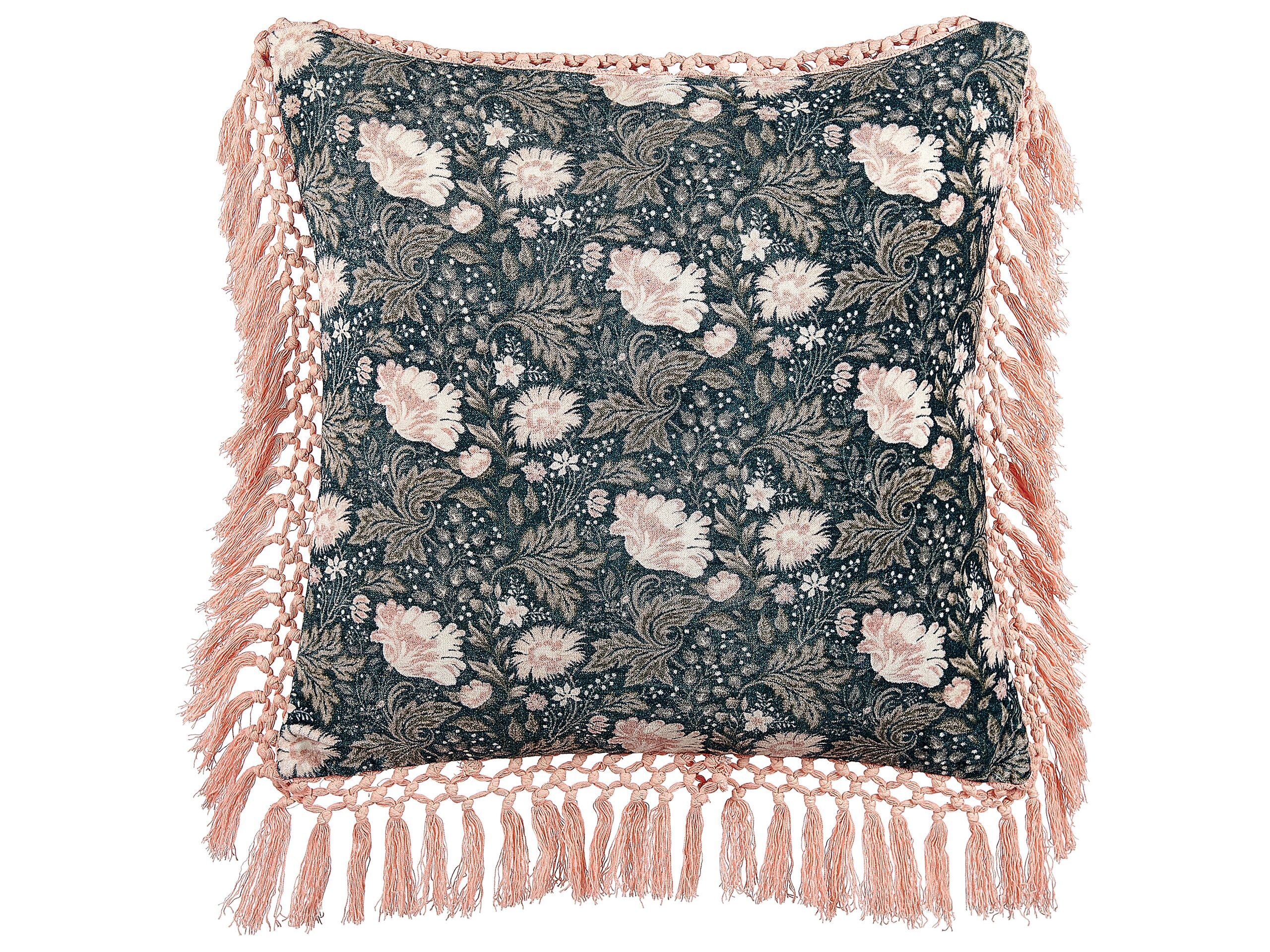Velvet Cushion Flower Pattern with Tassels 45x45cm Blue and Pink