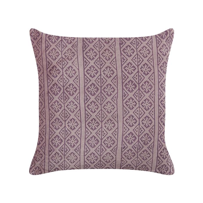 Enhance the decor of your everyday space with this cushion. Pair it up with other velvety accessories, or leave it on its own - in both cases, this piece is certainly going to charm all your guests. Besides being pleasant to touch, it's easy to clean, as it comes with a zip on its back. What is more, the striking, geometric pattern is unique, as it was made with block printing technique. Details: Color: Pink. Main material: Velvet. Additional material: Cotton. Material Composition: 100% Cotton Assembly: Does Not Require Assembly