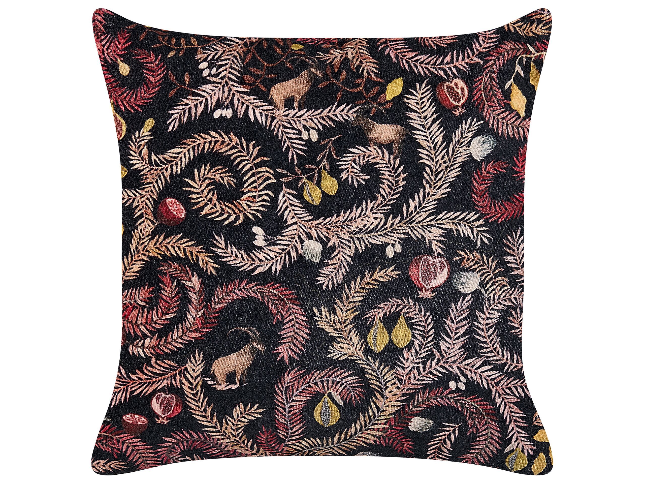 Velvet Cushion with Botanical Pattern 45x45cm Black and Pink