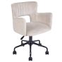 This swivel office chair is all about modern design, it presents a retro-inspired look mixed with functionality, high-quality materials and comfort. A padded seat comes with armrests and a backrest with eye-catching cut-out detail. The smooth velvet upholstery gives depth and sheen to the colour. The vertical tufting on the inner back lends the chair an elegant touch. Details: Color: Beige, Grey, Black. Main material: Velvet. Additional material: Iron, Velvet. Material Composition: 100% Polyester Weight: 7 Assembly: Partial Assembly Required Weight Capacity: 130 Seat Height: 39-47
