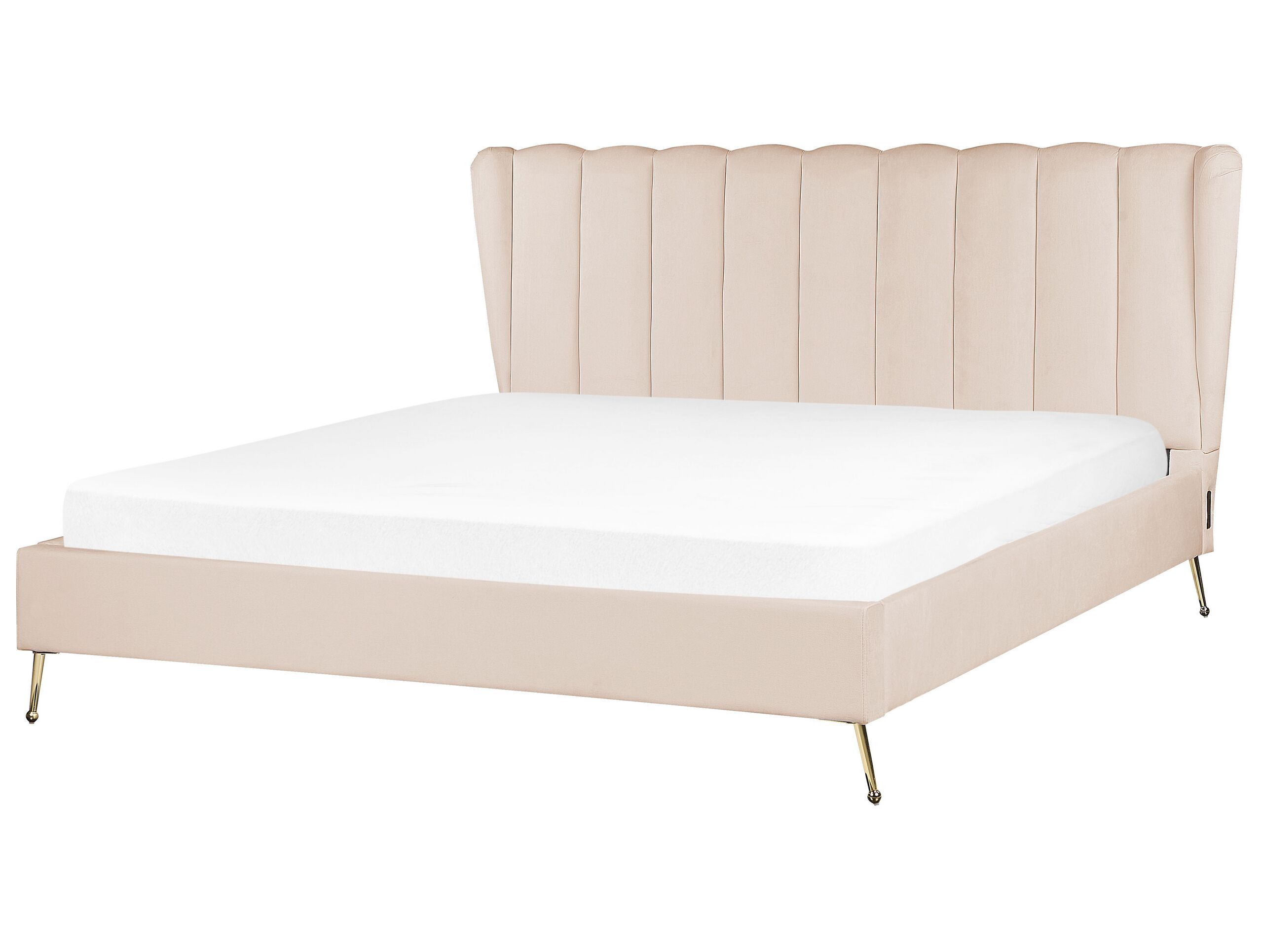 Velvet EU Super King Size Bed with USB Port Beige MIRIBEL