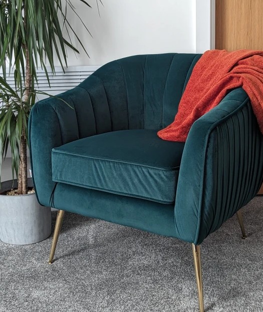 Velvet-Feel Tub Armchair, with Gold Tone Legs - Green