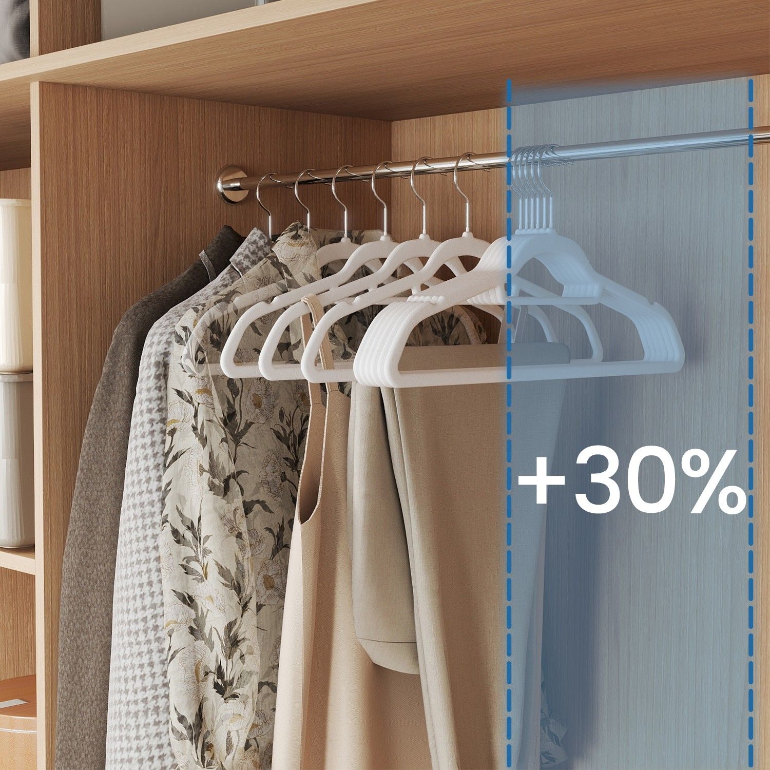 Velvet Hangers - SOLRO Set of 50 Non-Slip Hangers with Silver Swivel Hook - White