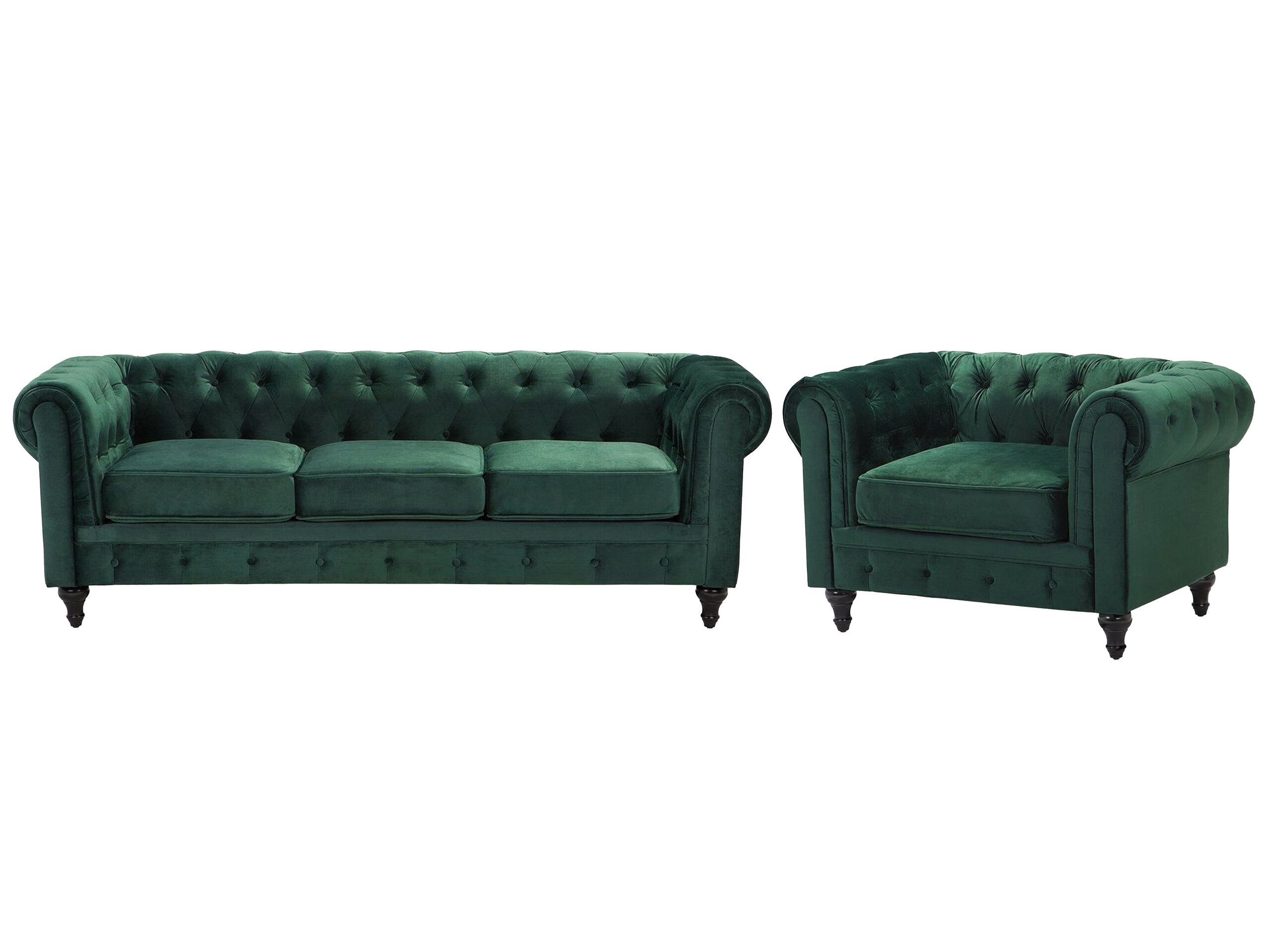 Velvet Living Room Set Green CHESTERFIELD
