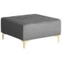 This modern footstool is the perfect addition to a sofa set. Fully upholstered in high-quality grey fabric and elegant tufting, it suits any interior colour scheme. Combine it with other pieces from the collection to create a seating arrangement tailored to suit you. The whole piece is kept stable thanks to metal legs. Details: Color: Grey, Gold. Main material: Velvet. Additional material: Plywood, Metal. Material Composition: 100% Polyester Weight: 15 Assembly: Legs to be Fitted Weight Capacity: 150 Legs Height: 13
