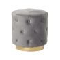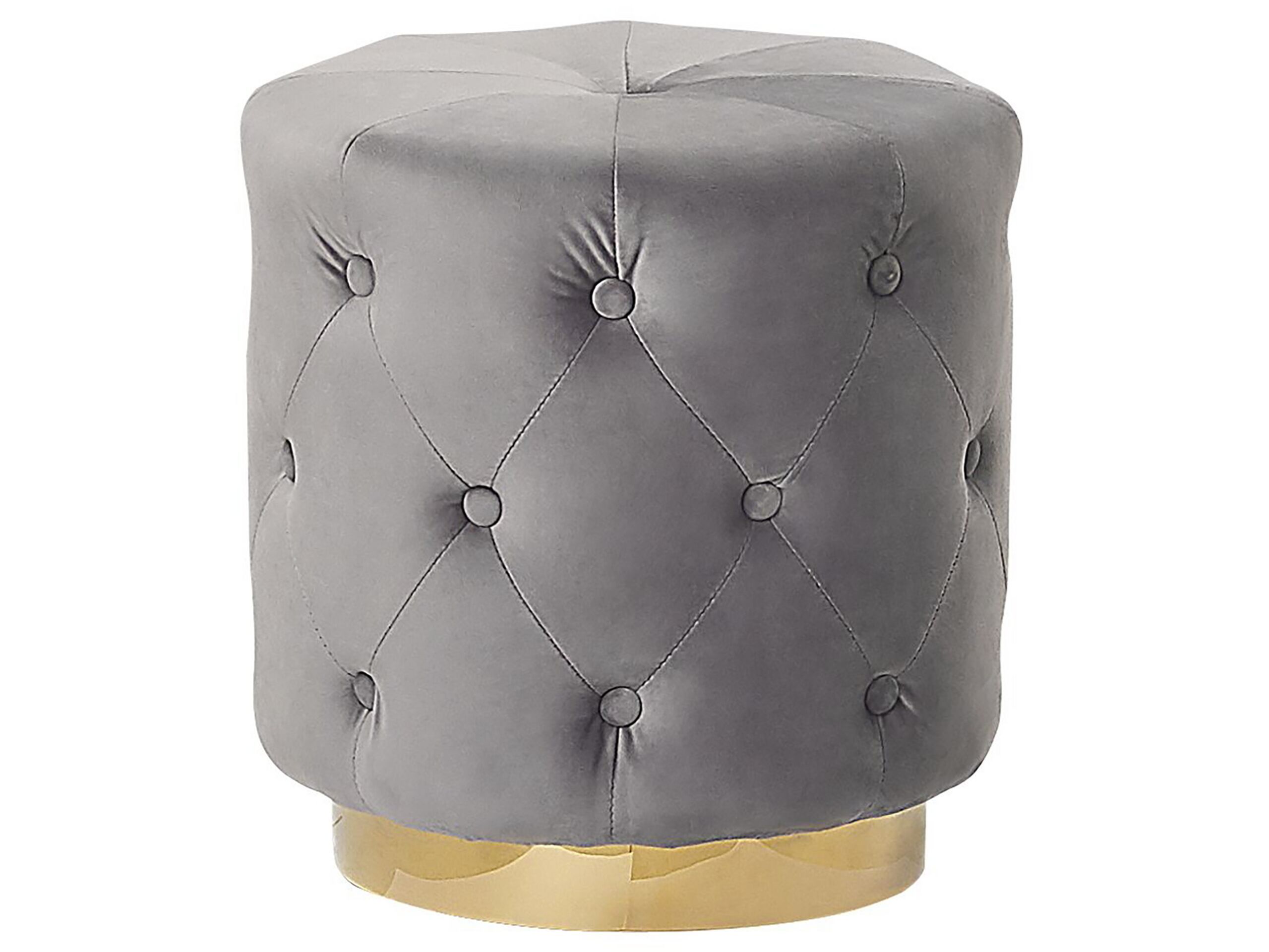 Upholstered in soft, trendy velvet, this elegant pouffe brings any modern or traditional living area, bedroom or hallway to a higher level. Decorated with chic tufting, featuring a stable golden base, it adds a glamorous flair to any arrangement. This pouffe works well as a dressing table seat, armchair footstool or a decorative, luxurious accent piece. Details: Color: Grey, Gold. Main material: Velvet. Additional material: Metal. Material Composition: 100% Polyester Weight: 4 Assembly: Does Not Require Assembly Weight Capacity: 100 Legs Height: 5