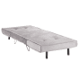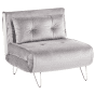Bring a glamorous feel to your interior with this functional and alluring sofa bed. Its upholstery made of durable velvet is exceptionally soft to the touch, and the thick padding makes it a truly comfortable piece. The upscale look of the furniture is emphasized with the gold metal legs. The additional cushion with button tufting and removable cover adds a bit of charm and cosiness to the couch. Moreover, thanks to the easy to operate sleeper function, you do not need to worry whenever your guests want to sleep over at your place. Details: Color: Grey, Gold. Main material: Velvet. Additional material: Iron. Material Composition: 100% Polyester Weight: 23 Capacity: 1 Person Assembly: Legs to be Fitted Cushions Dimensions: 70x30x10 Legs Height: 15 Padding Thickness: 30 Seat Height: 45 Sleeping Surface: 200x85