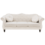 Enhance your interior with this elegant and glamorous sofa set. Featuring tufted backrest and armrests, paired with nailhead trim, this piece is truly one of a kind, elevating any space to a higher level. Its design, heavily inspired by retro and vintage decor, easily fits within any living room or office space. Made from high-quality materials, it is incredibly durable, while its surface is covered with smooth to touch and easy to take care of velvet. Legs of the piece are made out of solid wood, which reinforce stability. The sofa comes with two throw pillows that feature a removable cover that translates to easy cleaning without a worry for stains, in matching colour and design Details: Color: Beige, Black. Main material: Velvet. Additional material: Pine Wood, Eucalyptus Wood. Material Composition: 100% Polyester Weight: 101 Capacity: 5 People Assembly: Full Assembly Required Wood type: Pinus massoniana, Eucalyptus grandis Wood Origin: China Overall Dimensions: 200x83x91 Cushions Dimensions: 44x44 Legs Height: 16 Padding Thickness: 13 3 Seater Sofa Dimensions: 91x83x200 2 Seater Sofa Dimensions: 91x83x165 Seat Height: 44