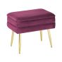 This beautiful bench with storage is a functional piece of furniture that will find its place in every bedroom or living room. It creates not only an additional seating spot but also a space to keep things thanks to the built-in storage inside. Upholstered with velvet in intense burgundy colour, the bench has golden legs that contribute to the elegant, luxurious design of the product. Put it next to your sofa, bed or a dressing table to enjoy this trendy accessory. Details: Color: Red, Gold. Main material: Velvet. Additional material: Nonwoven Fabric, Iron, Plywood. Material Composition: 100% Polyester Weight: 4.6 Assembly: Legs to be Fitted Weight Capacity: 100