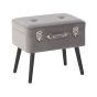 This vintage form inspired stool perfectly accentuates interiors in modern, traditional, and glam decor. Tailored in grey, polyester velvet upholstery, the stool features decorative buttons, glossy silver clips and a stylish handle. The sleek legs perfectly compliment the overall design of the piece and give it a minimalist feel. The stool can be opened just like a real suitcase and provides ample storage for all your bits and pieces. Details: Color: Grey, Black. Main material: Velvet. Additional material: Pine Wood. Material Composition: 100% Polyester Weight: 6 Assembly: Legs to be Fitted Wood type: Pinus massoniana Weight Capacity: 150 Legs Height: 24