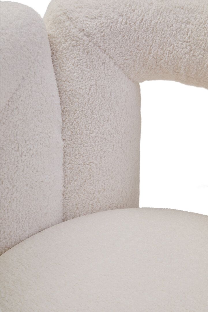 The VENDRELL statement chair is a contemporary blend of comfortable seating with ivory textured boucle upholstery and unique eye-catching design.