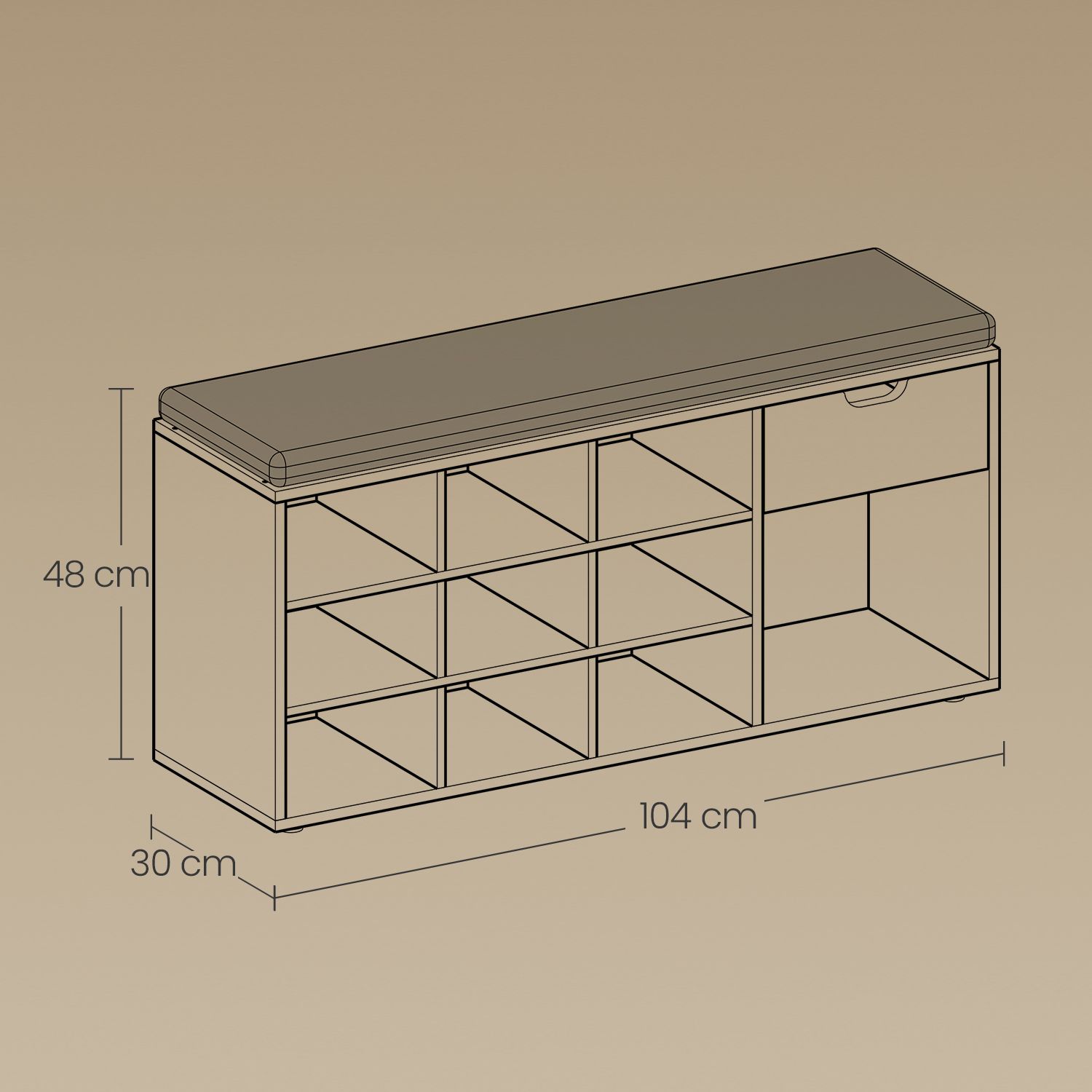 VERRA Shoe Bench - 10 Compartment Cushion Seat Medium Sized Bench - Rustic Brown