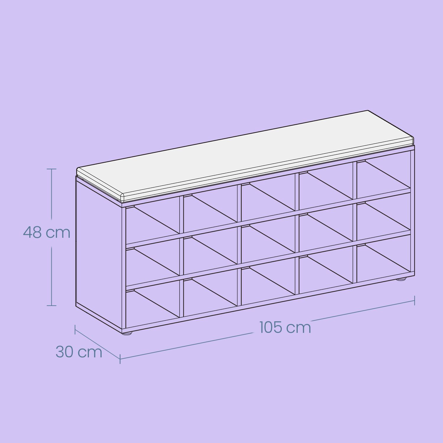 VERRA Shoe Bench - 15 Compartment Cushion Seat Medium Sized Bench - Camel Brown