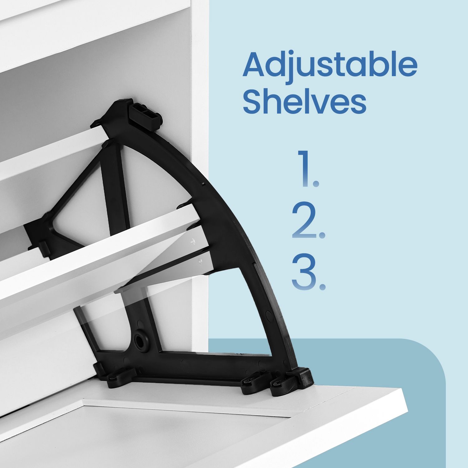 VERRA Shoe Bench - 8 Pairs Height Adjustable Flip-Up Door Medium Sized Bench - White
