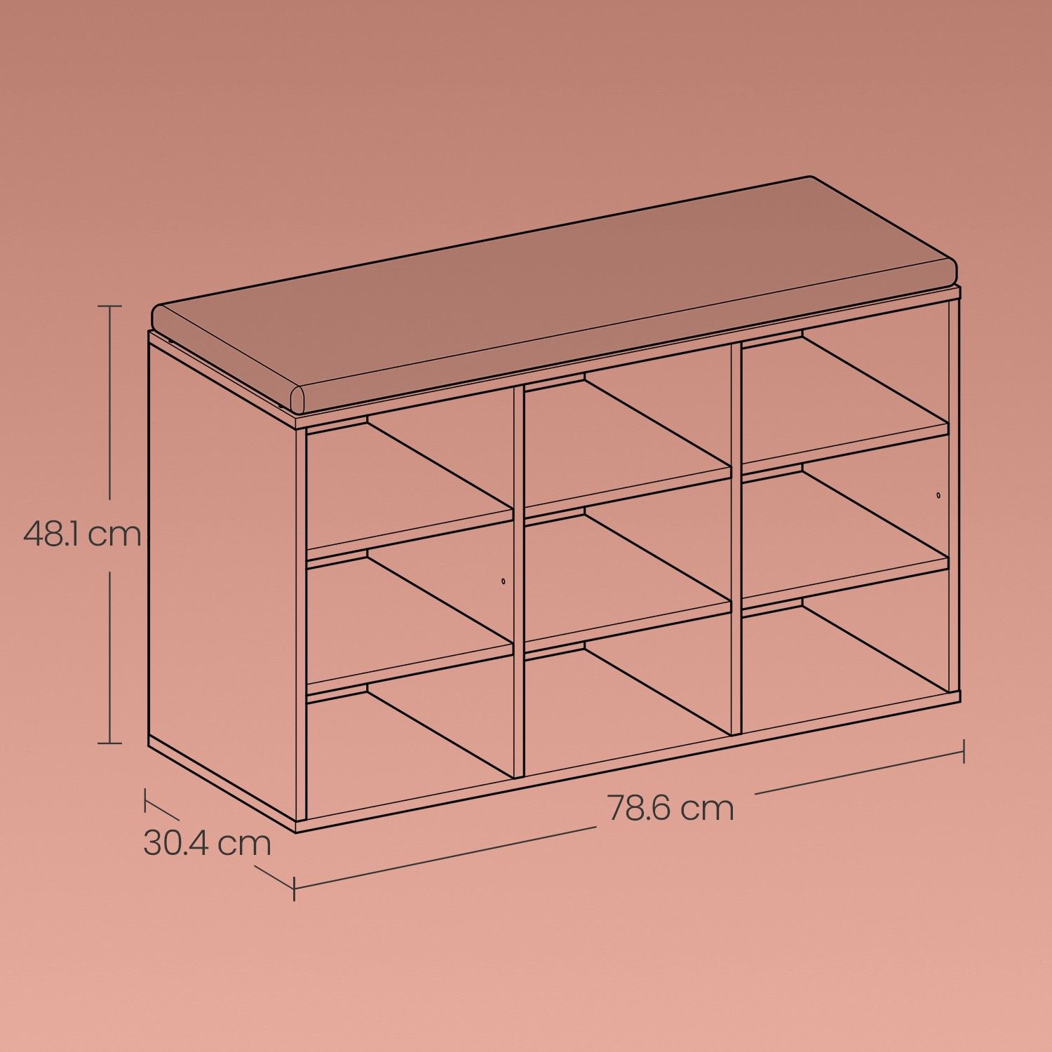 VERRA Shoe Bench - 9 Compartment Padded Seat Medium Sized Bench - White