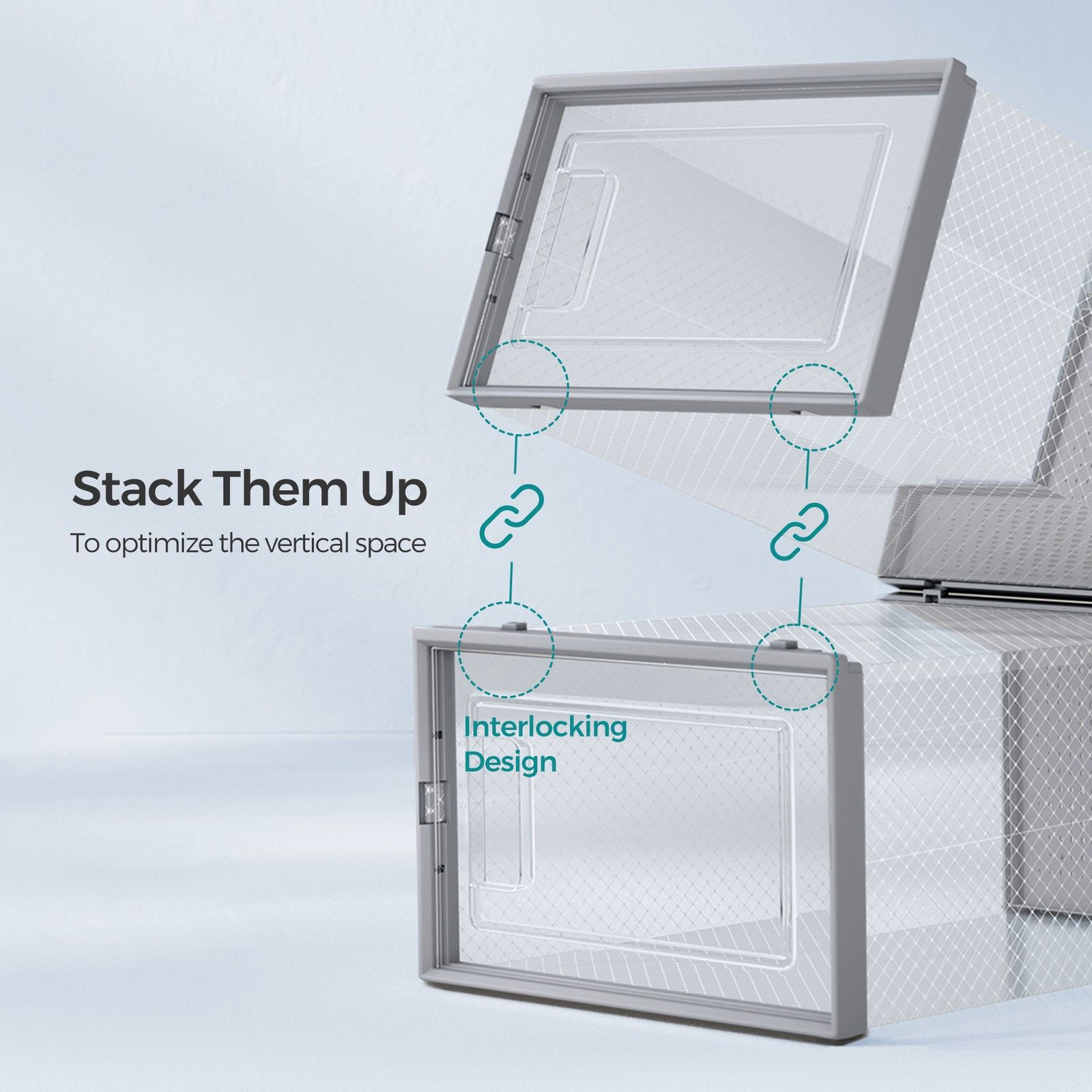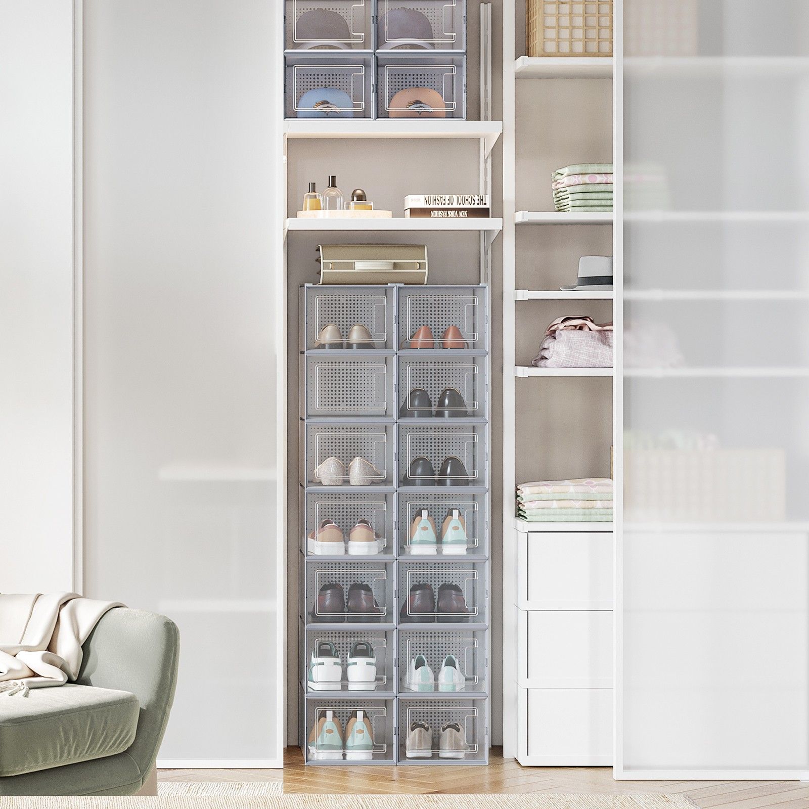 VERRA Shoe Box - 12 Pack Stackable Storage Small Sized ShoeBox - Grey