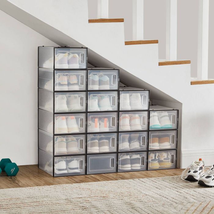 VERRA Shoe Box - 18 Pack Stackable Organizer Small Sized ShoeBox - Black