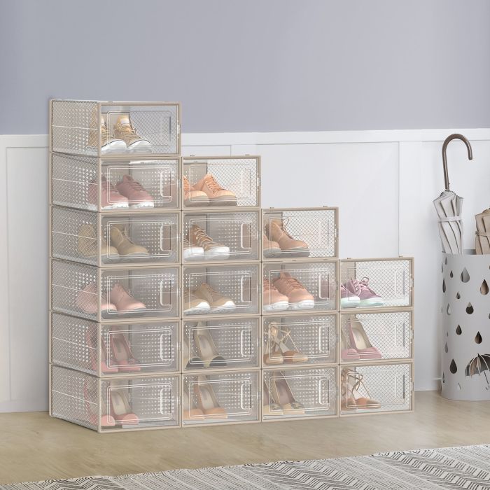 VERRA Shoe Box - 18 Pack Stackable Storage Small Sized ShoeBox - Beige