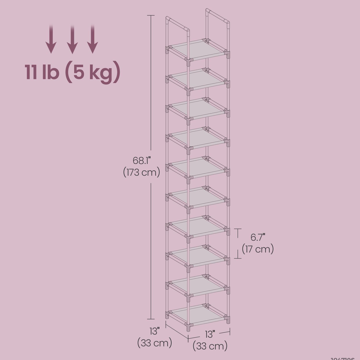 VERRA Shoe Rack - 10 Tier Storage Large Sized Rack - Grey