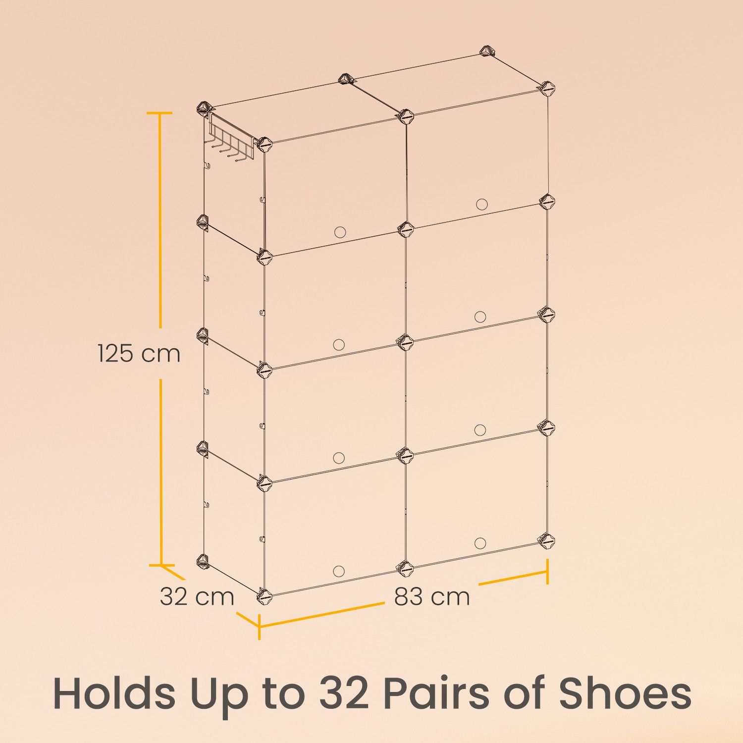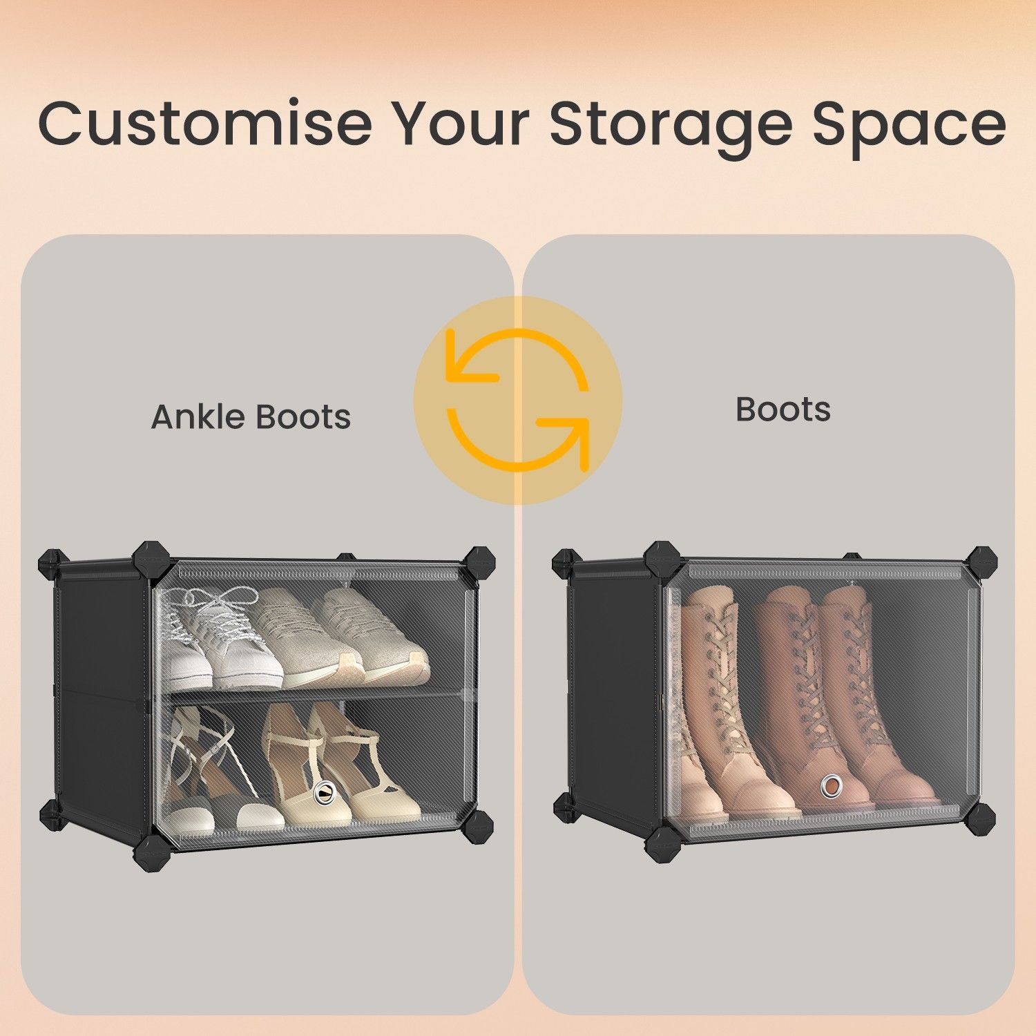 VERRA Shoe Rack - 16 Slots Interlocking Modular Storage Large Sized Rack - Black