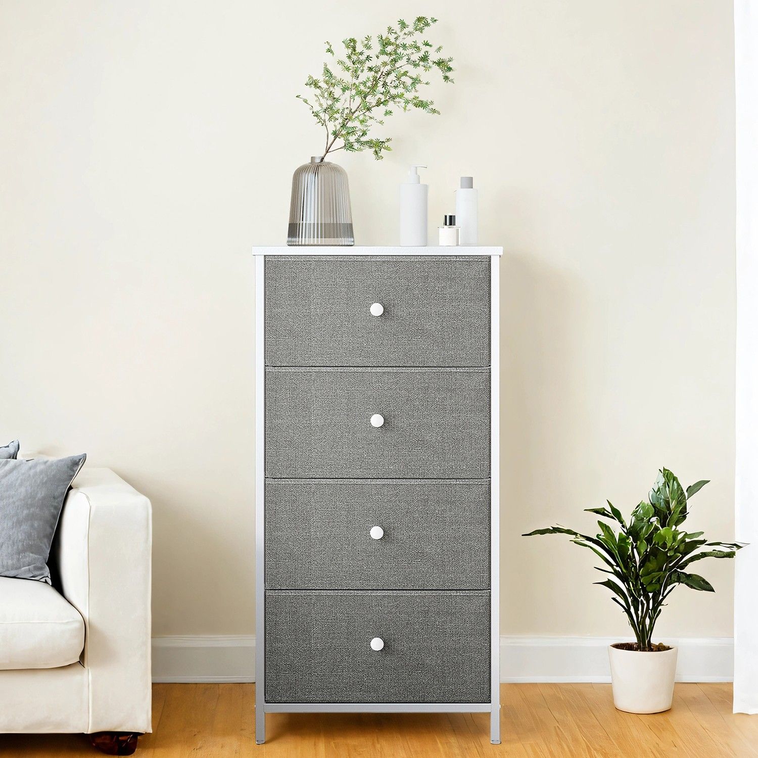 VERRA White Grey Chest of Drawer - Medium-sized, 4 Drawers