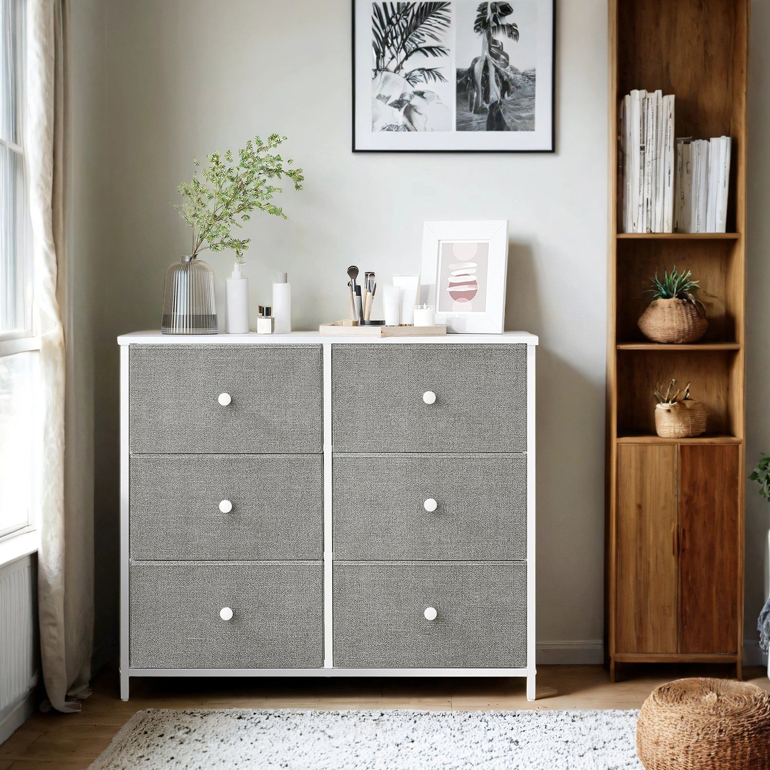 VERRA White Grey Chest of Drawer - Medium-sized, 6 Drawers