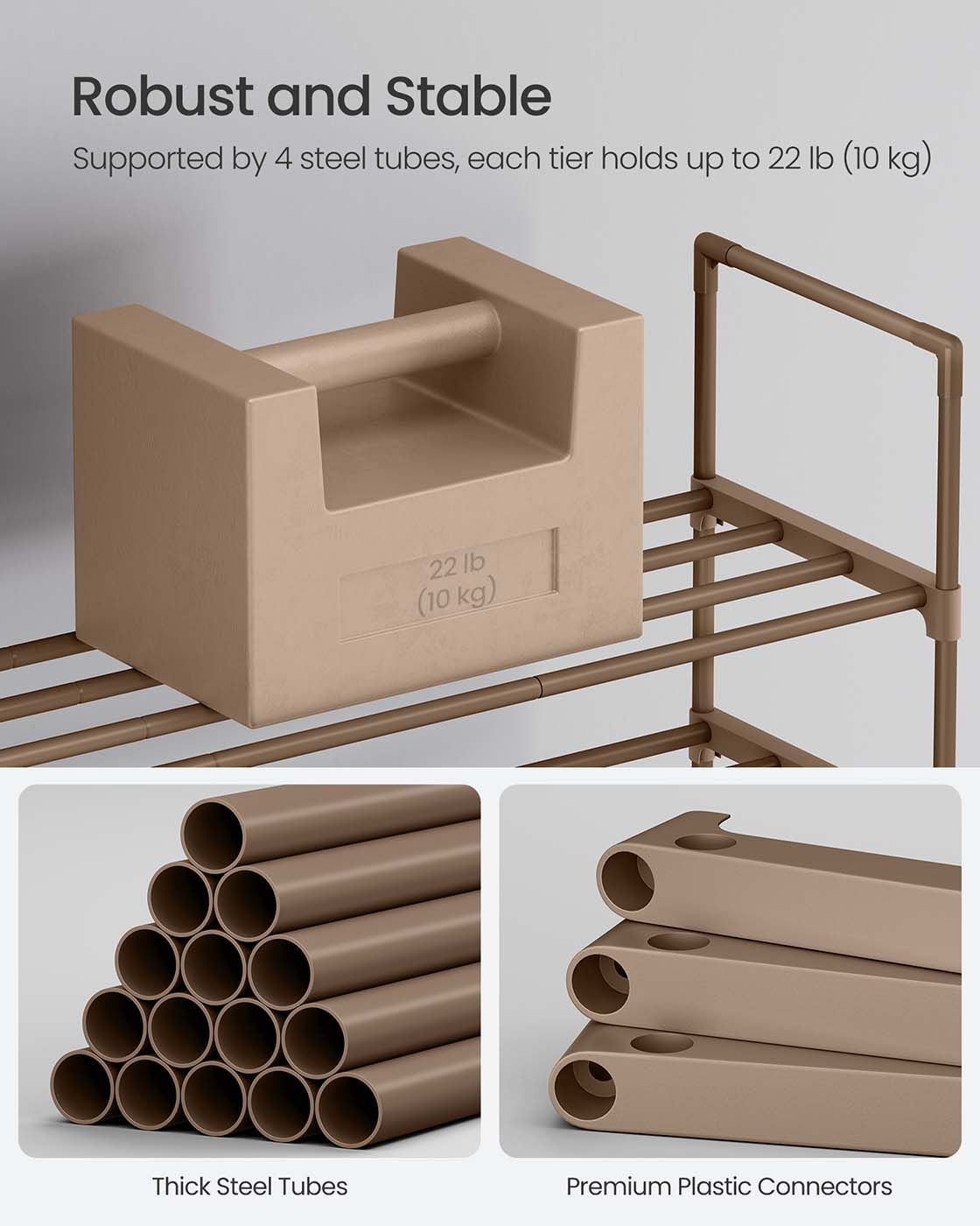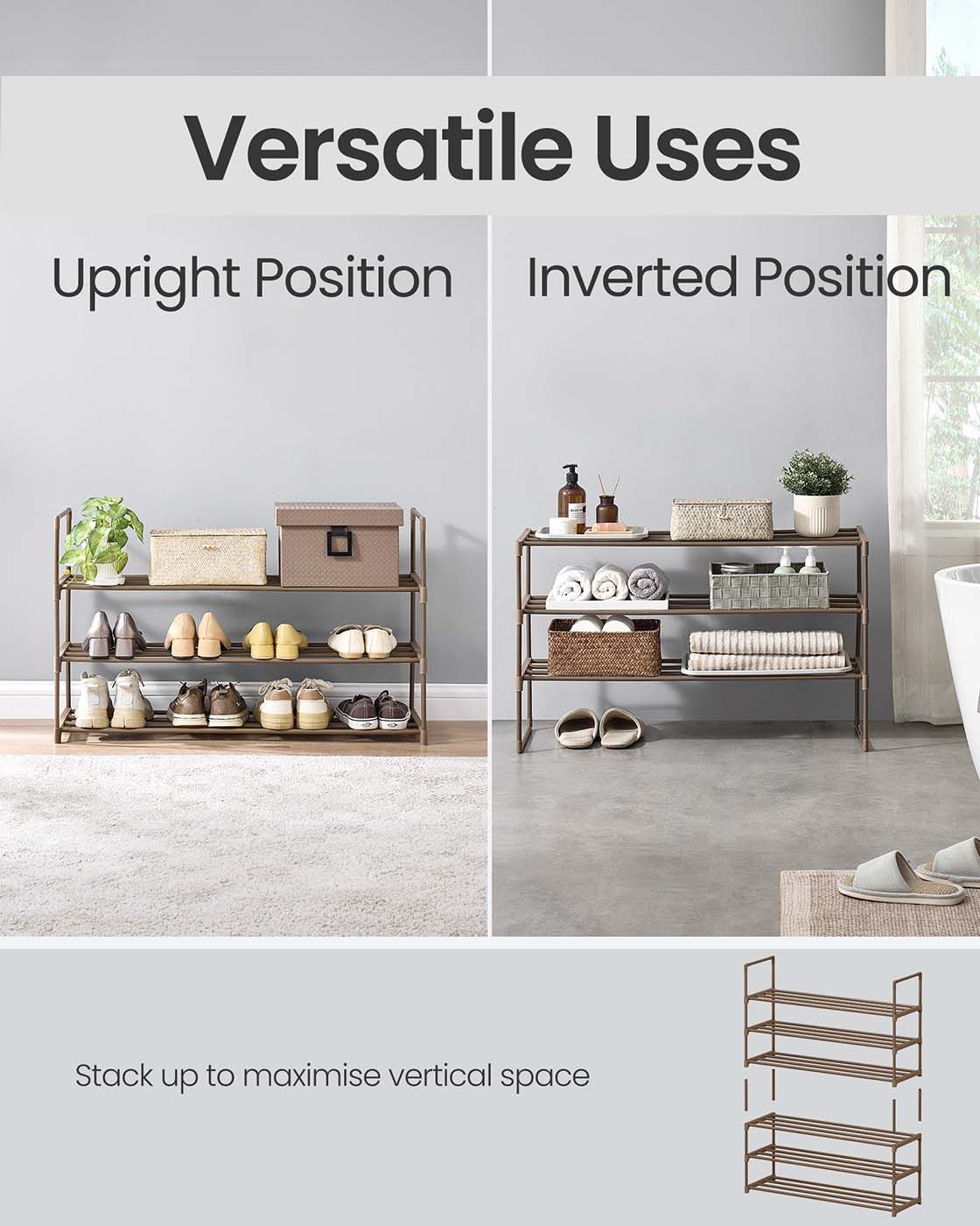 VERTA Shoe Rack - 3 Tier Stackable Organizer Medium Sized Rack - Walnut Brown