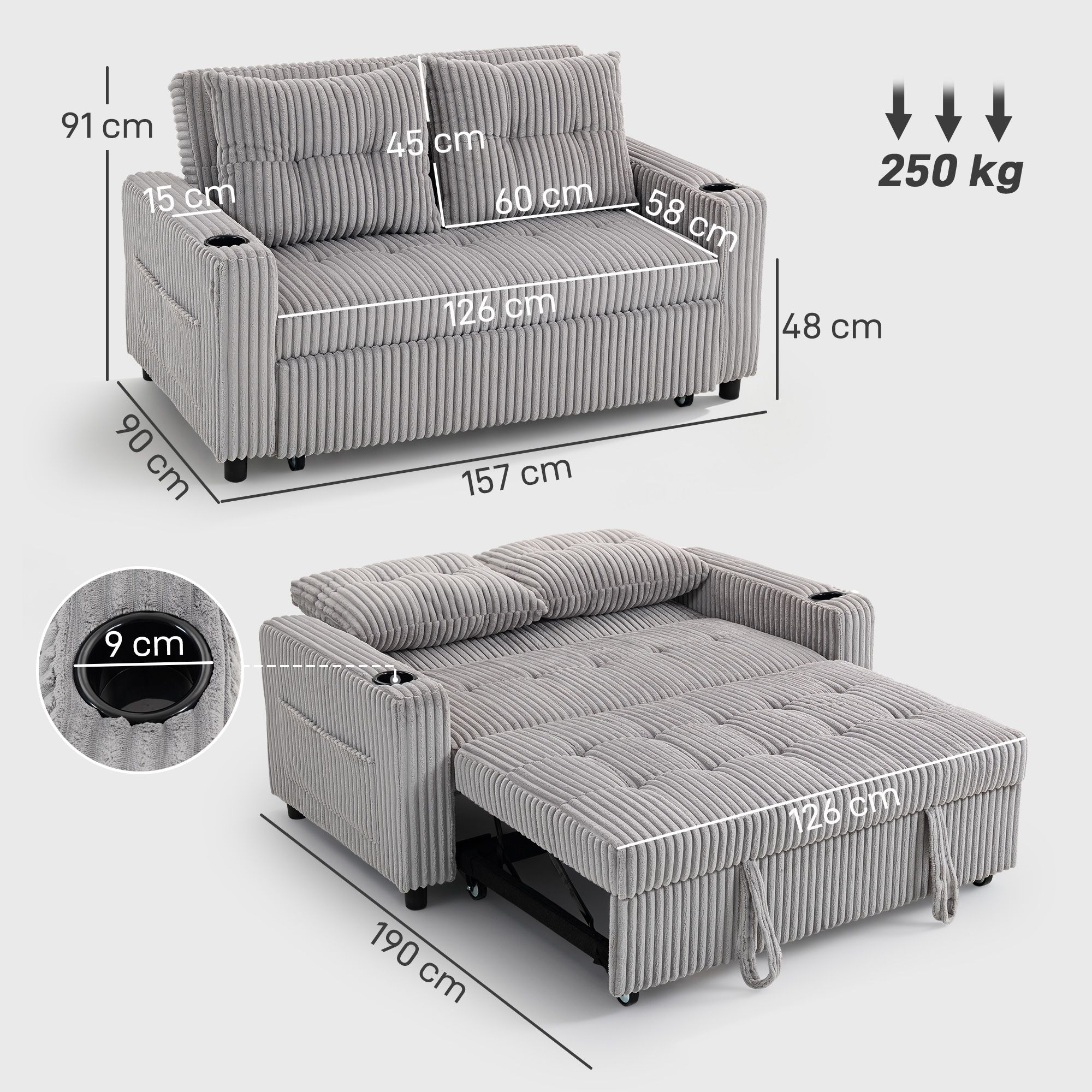 Overall Sofa Dimension: 157W x 90D x 91H cm, Overall Bed Dimension: 157W x 190D x 49H cm, Sofa Seat Size: 126W x 58D x 48H cm