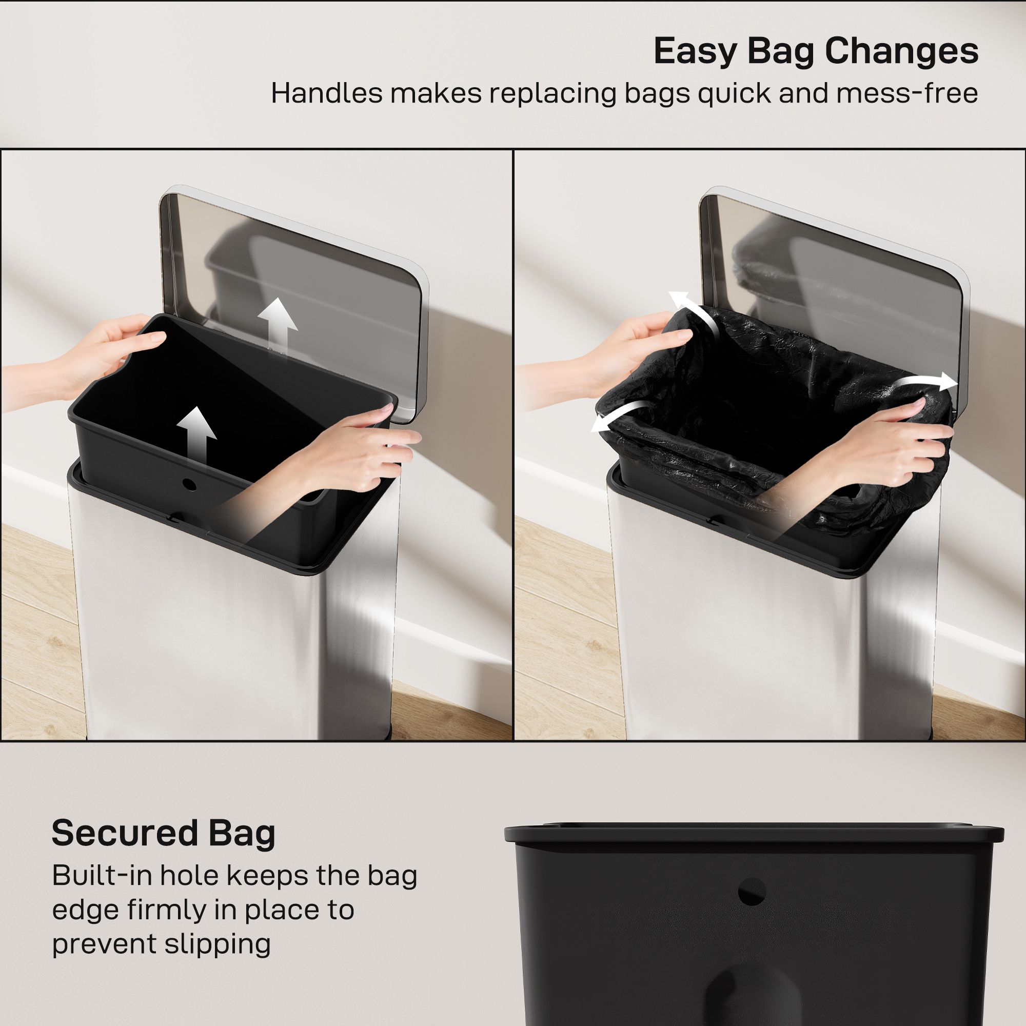VEXMEREE 20L Rubbish Bin with Soft Close Lid, Stay Open Function, Pedal Bin and Removable Inner Bucket -Silver