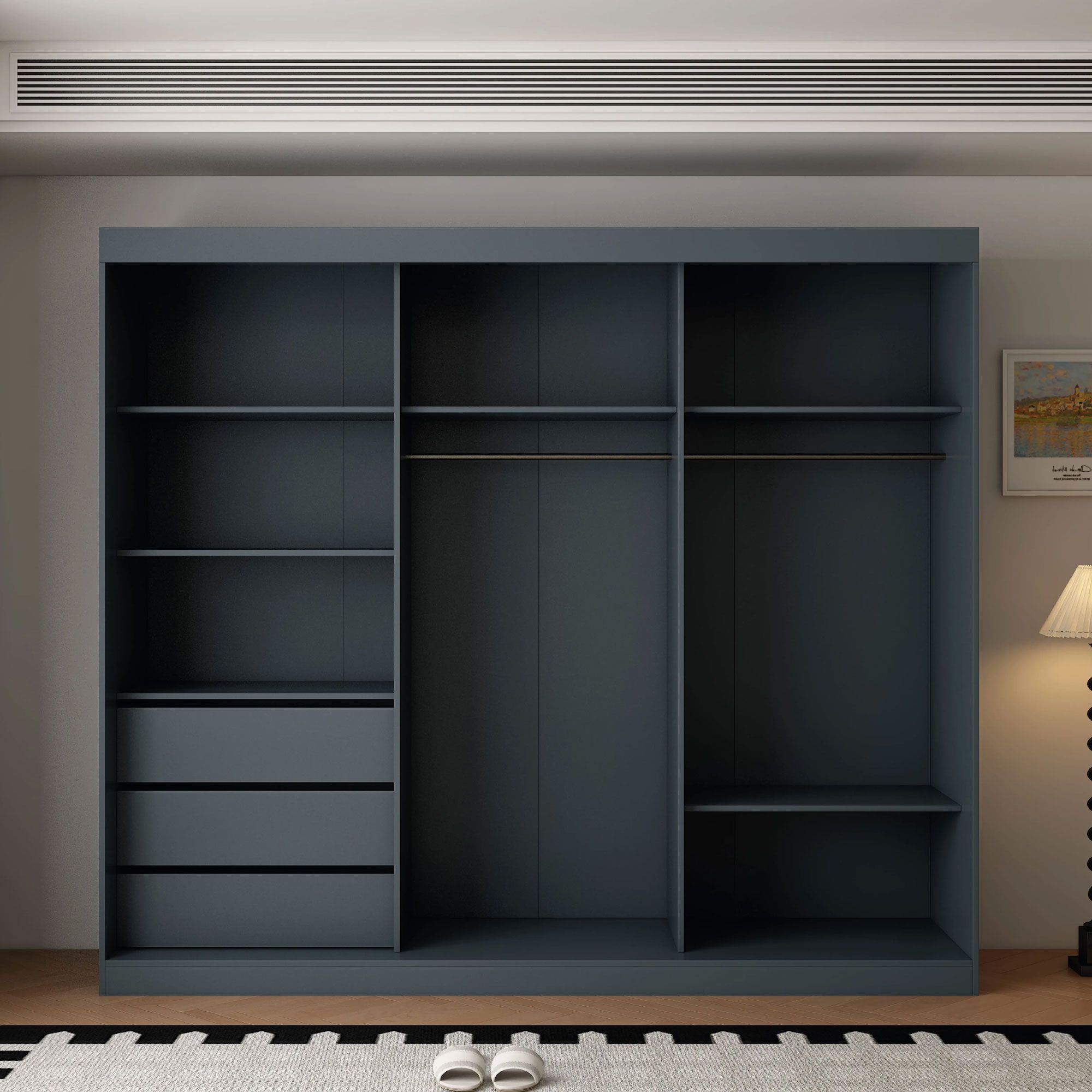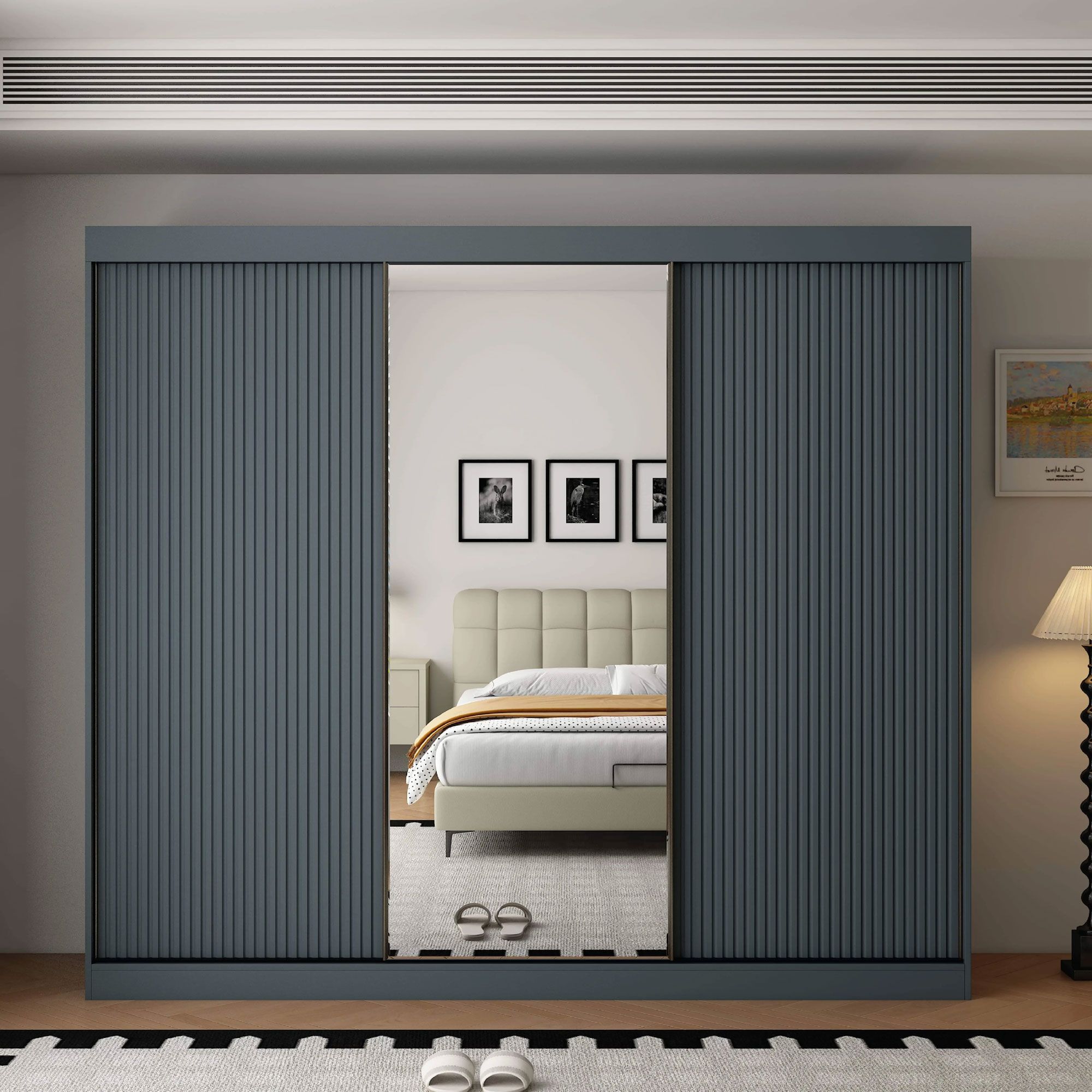 VIENNA 3 Door Mirrored Sliding Wardrobe Dark Grey - 250cm