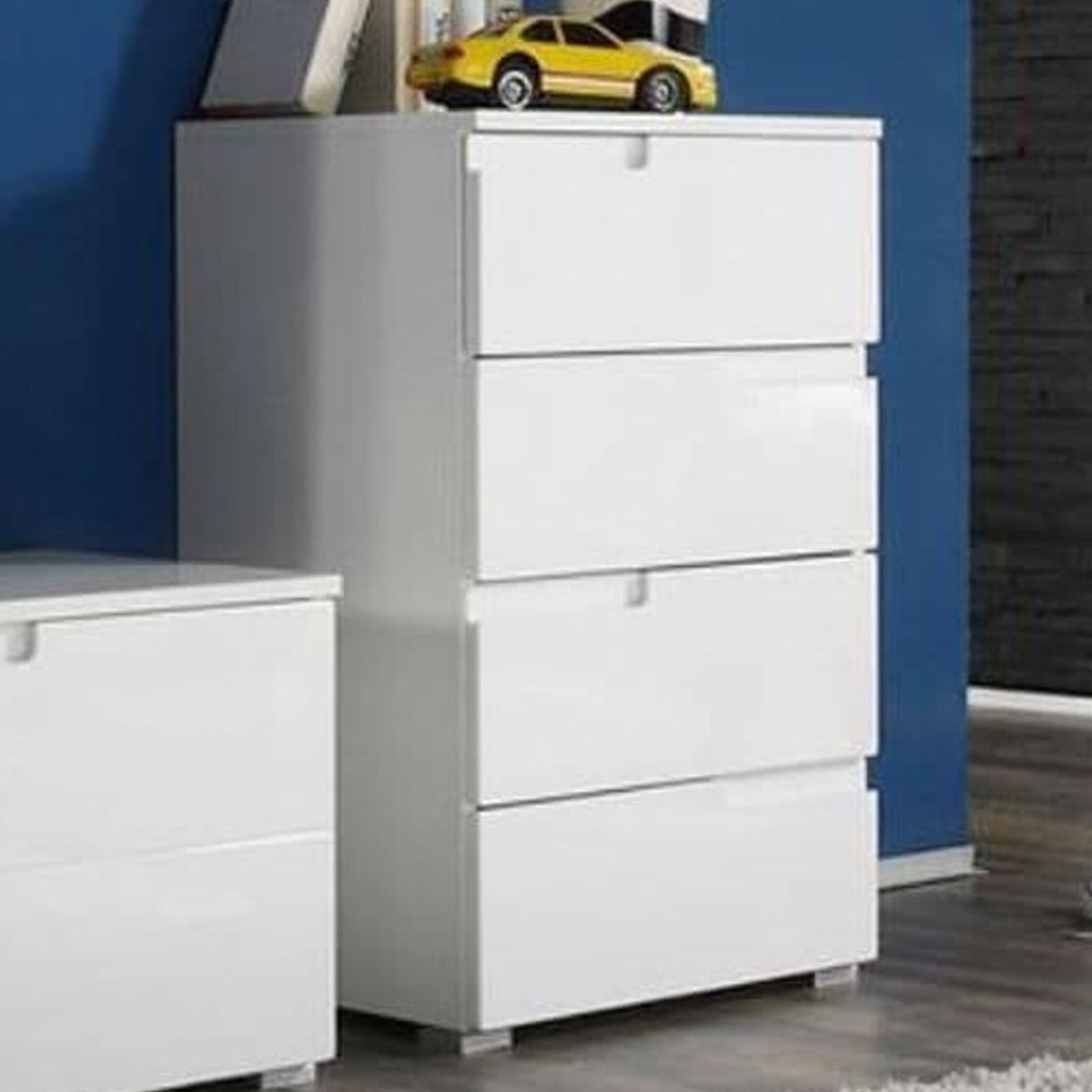 - Colour: White High Gloss Fronts - Matt white sides and top