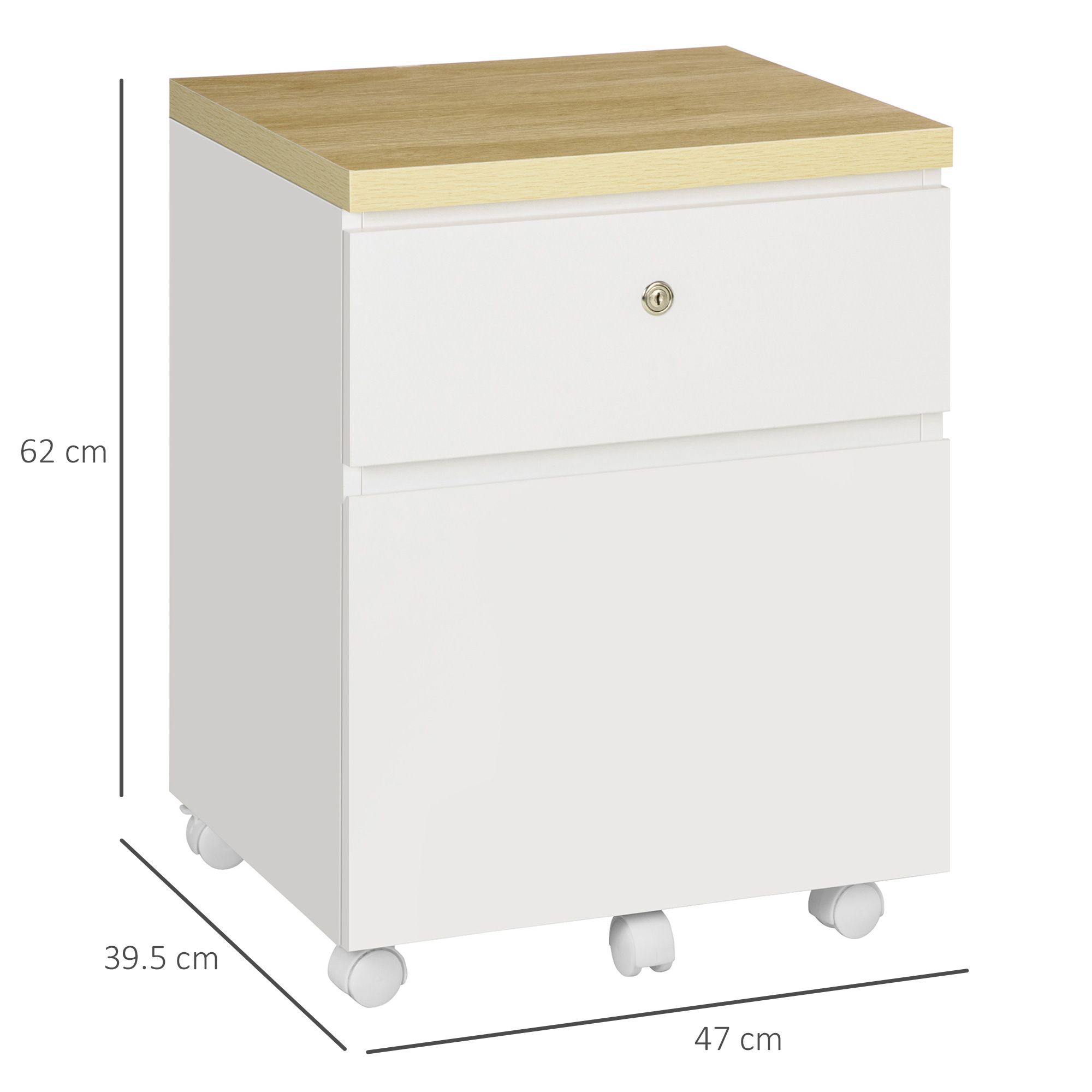 2-Drawer Filing Cabinet with Lock, Mobile File Cabinet with Hanging Bars for A4 Size and Wheels, Home Office Study, White