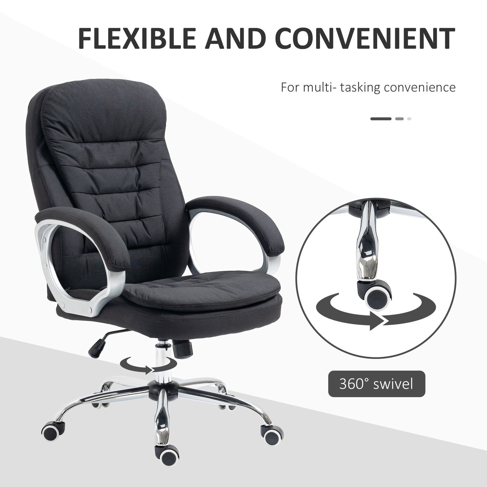 - 360 degree swivel base with five steady castor wheels to move around easily on all surfaces