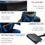 Ergonomic Racing Gaming Chair Office Desk Chair Adjustable Height Recliner with Wheels, Headrest, Lumbar Support, Retractable Footrest Blue
