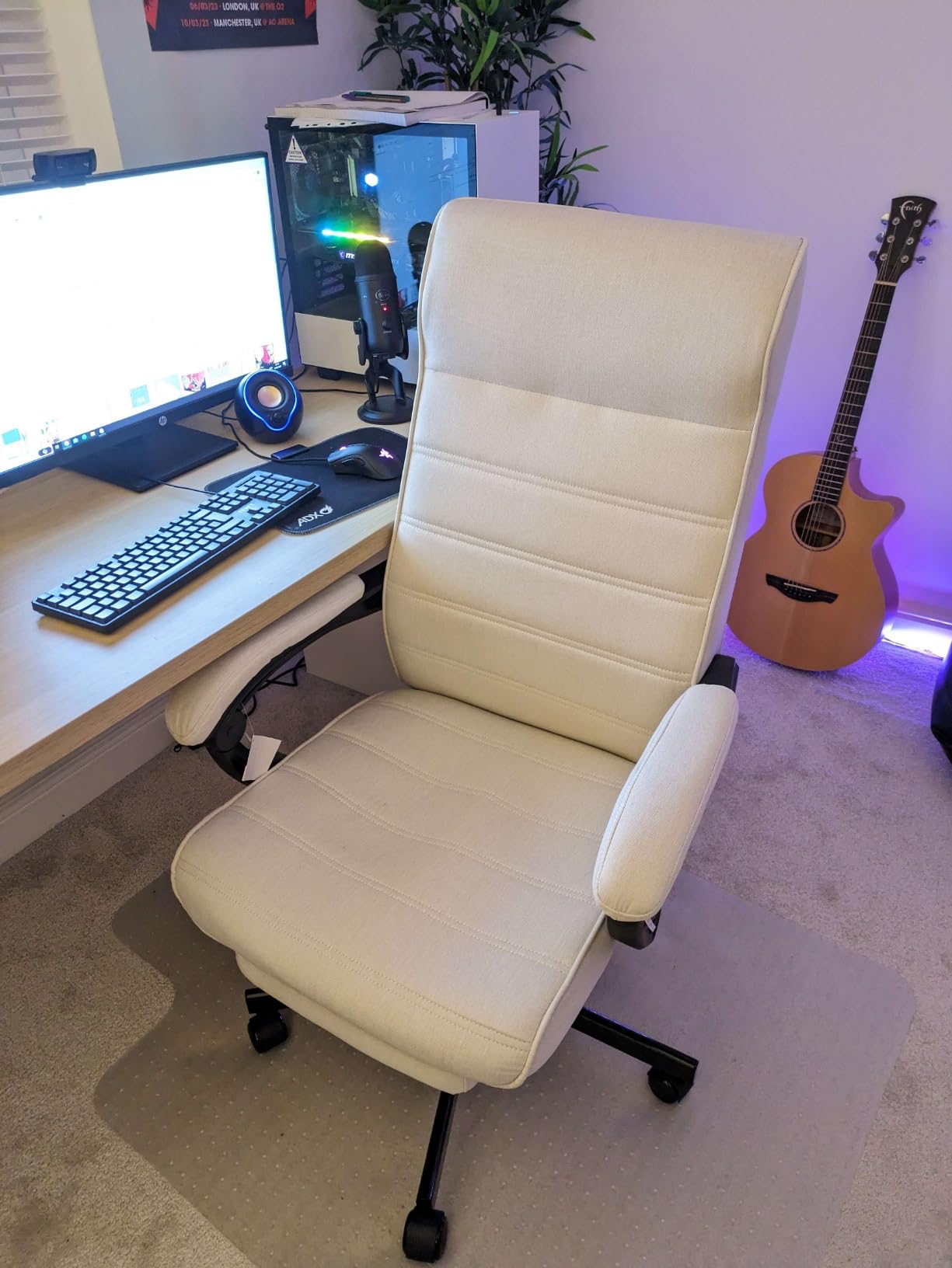 - Reclining, with footrest: Back on this high back office chair goes back to a maximum 135° angle. Great for lying back and taking time out. Manual footrest to elevate your lower body. An office chair for home, an office chair for work.
