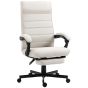 High-Back Home Office Chair, Linen Swivel Reclining Chair with Adjustable Height, Footrest and Padded Armrest for Living Room Cream White