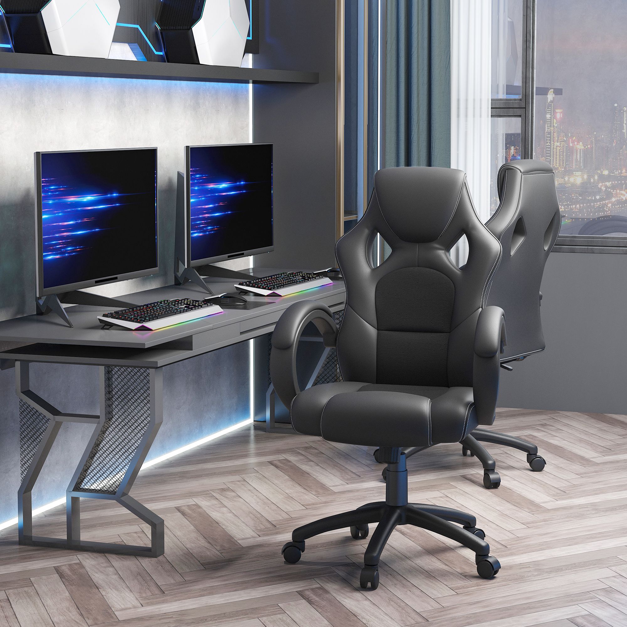 High-Back Office Chair Faux Leather Swivel Computer Desk Chair for Home Office with Wheels Armrests Black