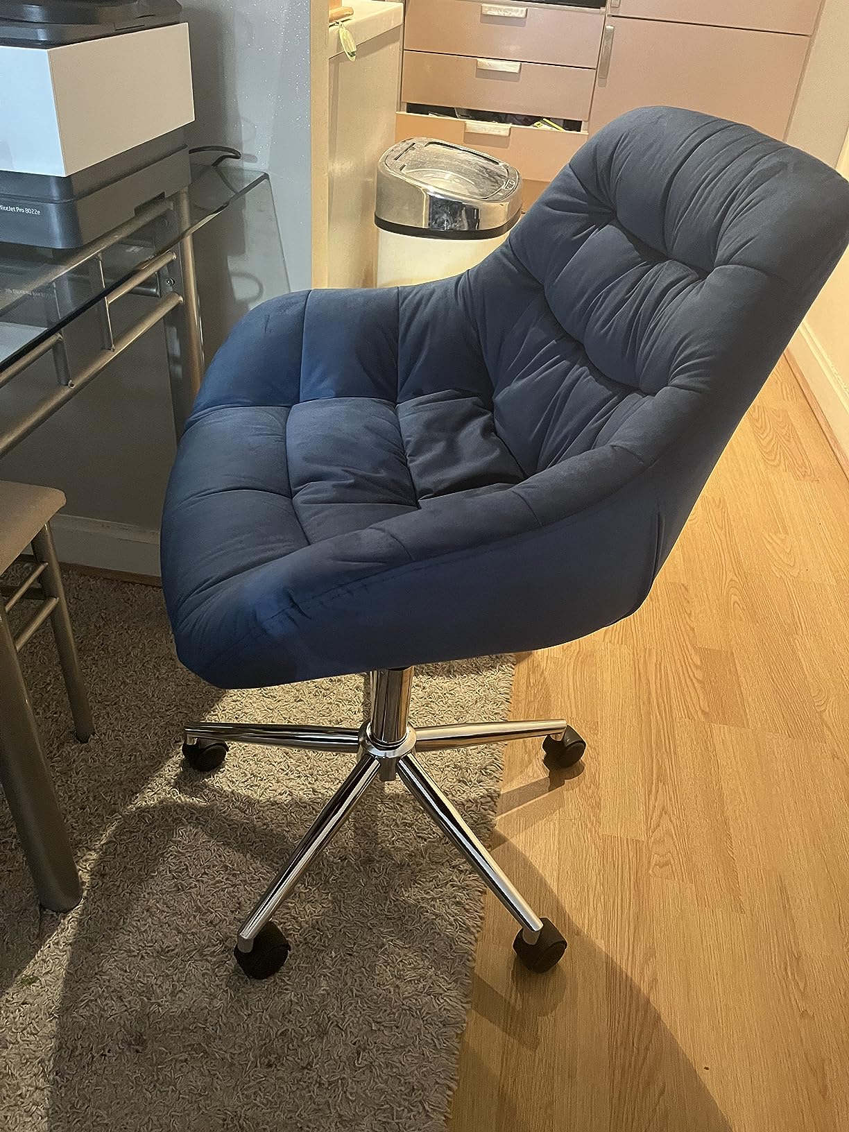 Home Office Chair Velvet Ergonomic Computer Chair Comfy Desk Chair with Adjustable Height, Arm and Back Support, Blue