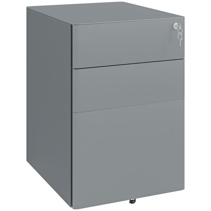 Vinsetto Lockable Cabinet, Rolling Filing Cabinet with 3 Drawers, Steel Office Drawer Unit for A4, Letter, Legal Sized Files