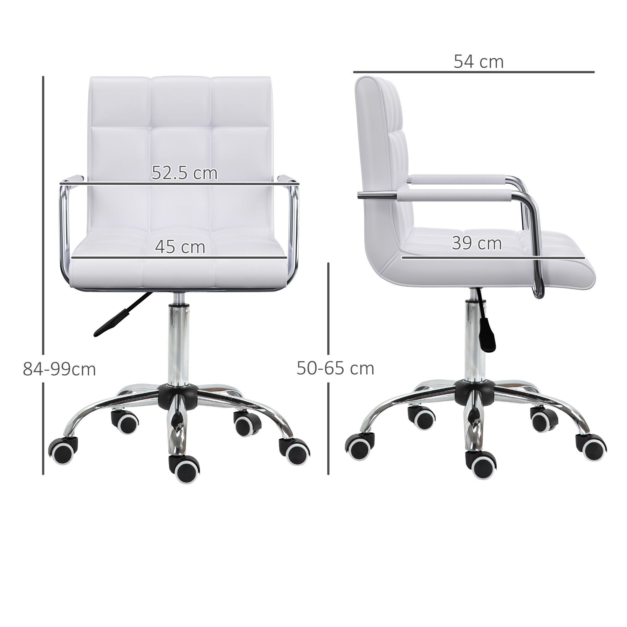 Mid Back PU Leather Home Office Desk Chair Swivel Computer Chair with Arm, Wheels, Adjustable Height, White