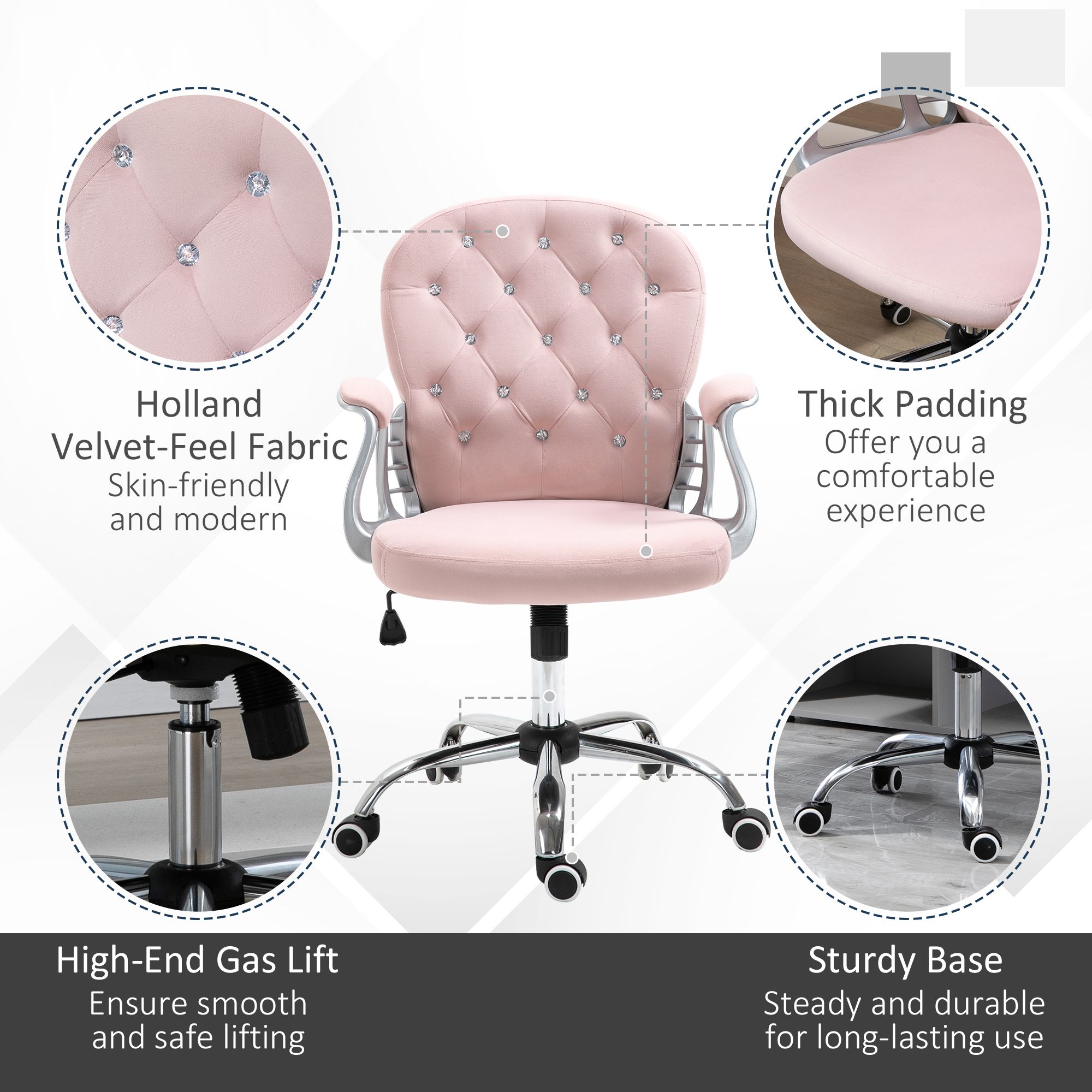 Office Chair Ergonomic 360° Swivel Diamond Tufted Home Work Velour Padded Base 5 Castor Wheels Pink