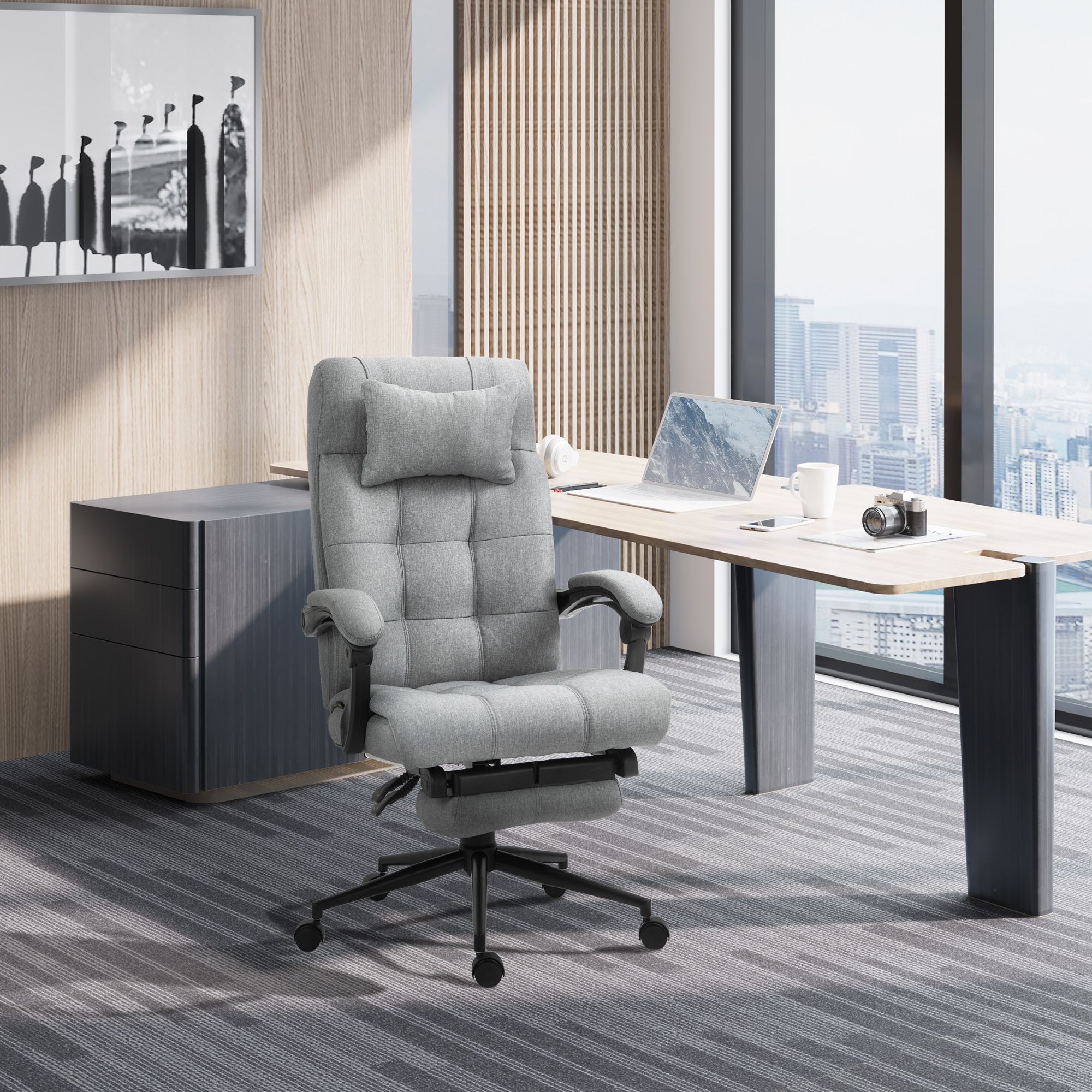 Office Chair with Footrest Ergonomic Office Chair with Armrests Lumber Support and Headrest Light Grey