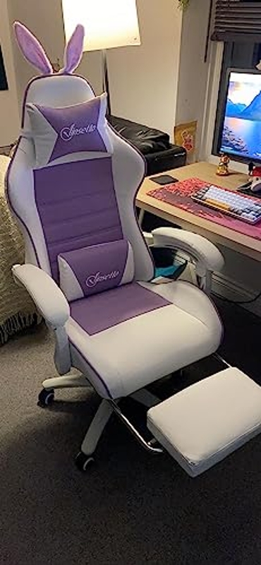 - Stay in the game: Our racing style game chair with stylish colourway will keep you feeling like you're apart of the action. Adding a detachable bunny ear headband makes the chair cute and decorates your study, home office, rest and so on.