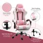 Thinking of pink for your games room? This cute gamer chair for adults and teenagers from is the answer. PVC leather upholstery in a pink and white colour design makes it different to look at, as well as smooth to sit on. This gaming computer chair comes with a lumbar back and top neck cushion for extra support. Height is adjustable so you can work at a level best for you. For ultimate relaxation points, it features a 135° reclining back, with a pull-out footrest.