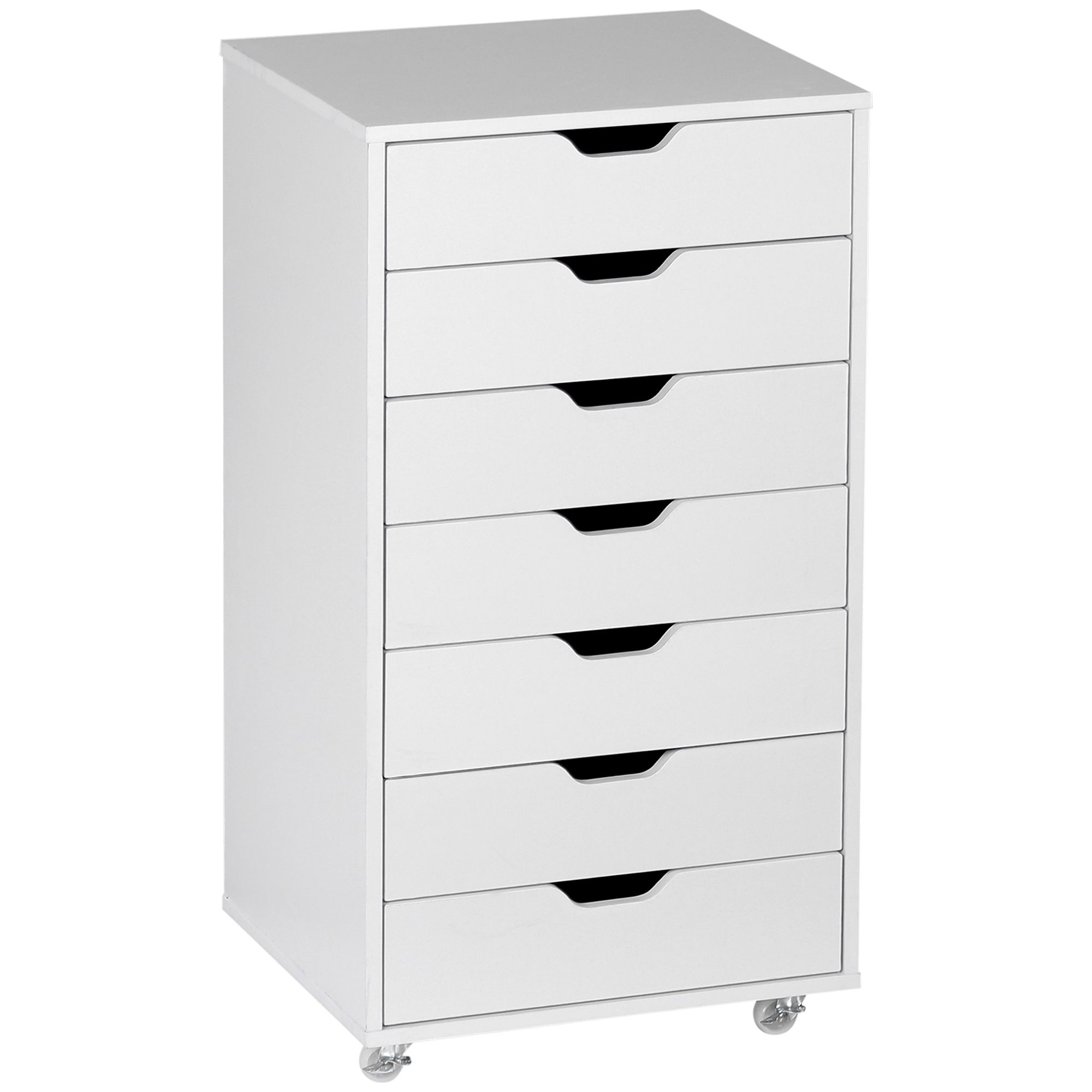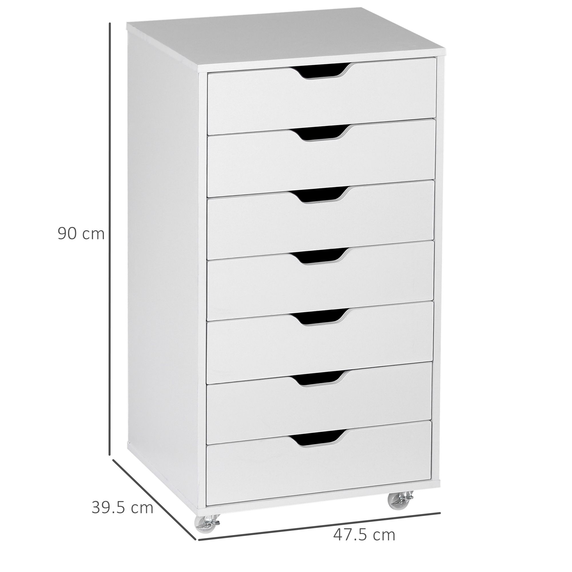 Vinsetto Vertical Filing Cabinet, 7-drawer File Cabinet, Mobile Office Cabinet on Wheels for Study, Home Office, White