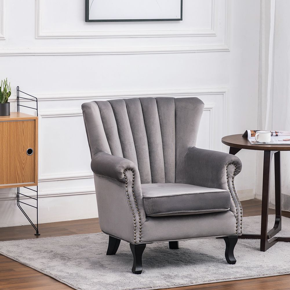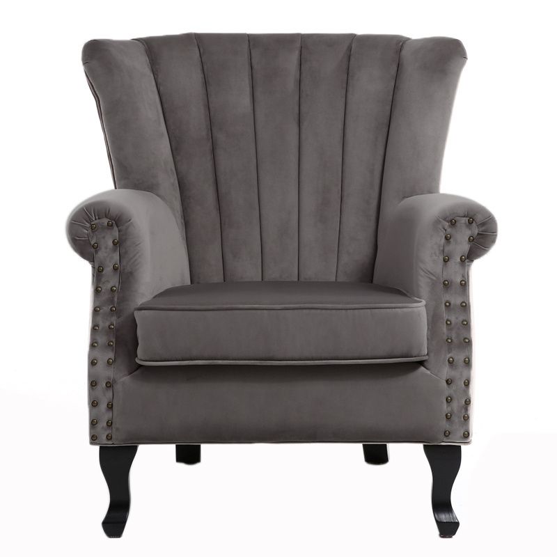 You're reviewing:Vintage Grey Velvet Wing Back Armchair with Studs
