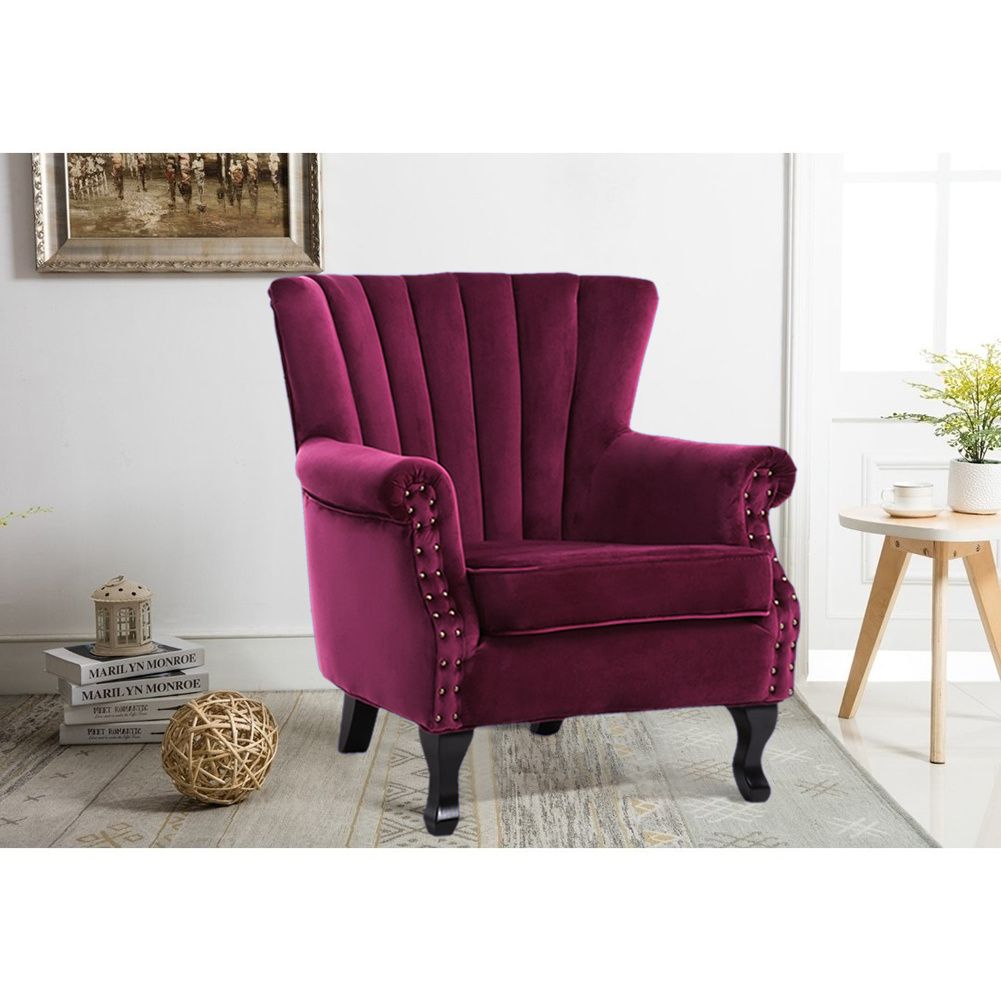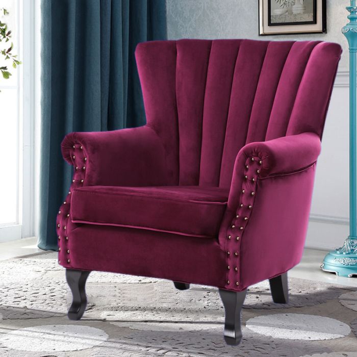 You're reviewing:Vintage Red Velvet Wing Back Armchair with Studs
