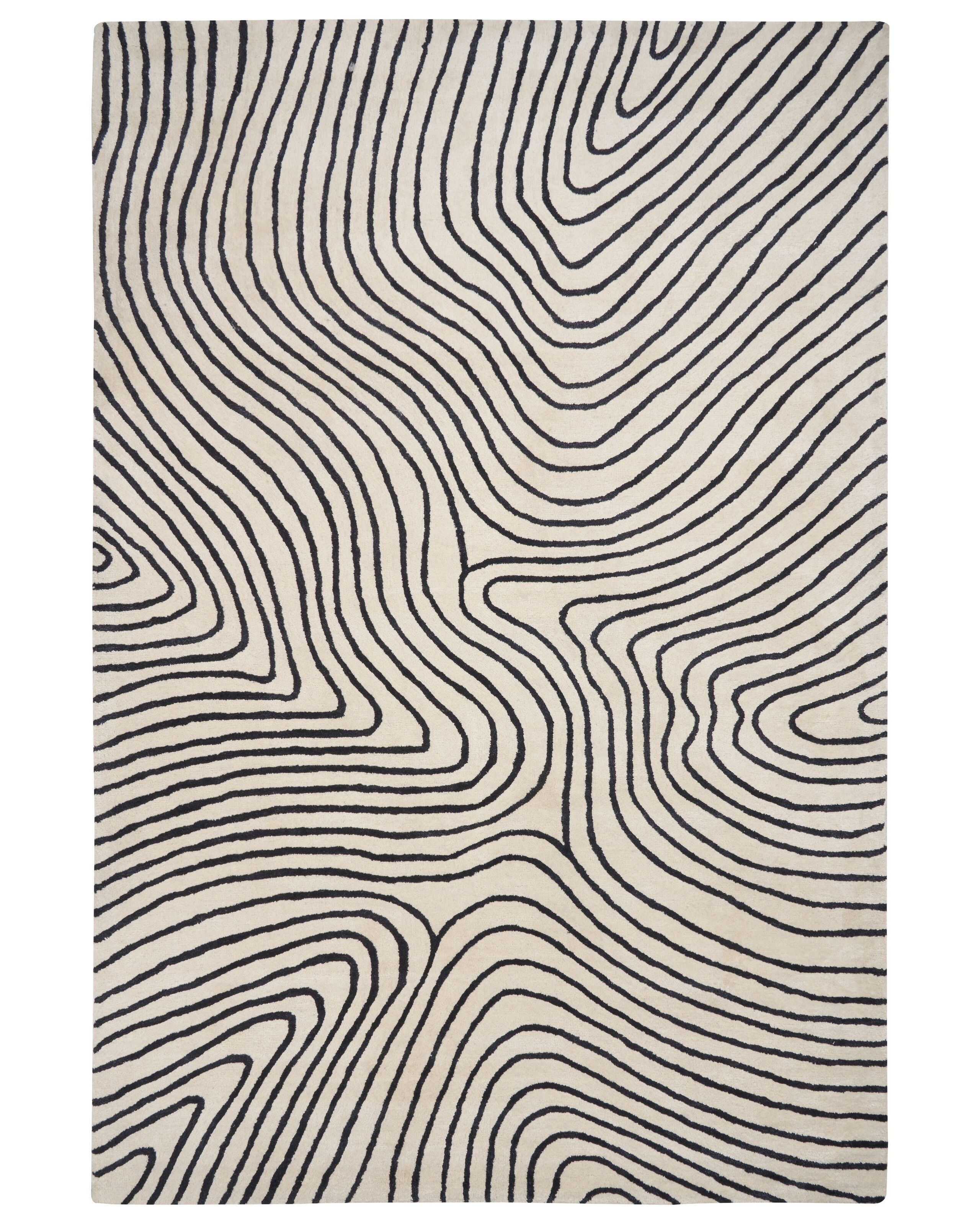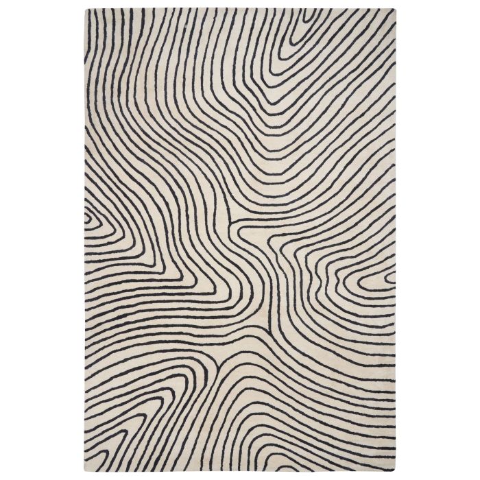 Discover sophistication with this hand-tufted rectangular area rug, skillfully crafted from a blend of viscose and wool. Adorned with a striking black and white geometric pattern, this rug effortlessly merges modern design with timeless elegance. The cotton backing ensures durability, making it a captivating addition to your living space that harmonizes style and functionality. Details: Color: White, Black. Main material: Viscose. Additional material: Wool. Material Composition: 60% Viscose, 40% Wool Weight: 24 Assembly: Does Not Require Assembly