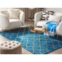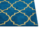 When you want to add a mix of oriental and glam vibe to your living room, bedroom or home office, this area rug is a perfect fit for you. A shiny gold quatrefoil pattern with a crackle finish on a solid background makes it look luxurious. The rug is handmade from viscose and features cotton backing. Thanks to the short pile, it's easy to clean and perfect for animal owners. Details: Color: Blue, Gold. Main material: Viscose. Material Composition: 100% Viscose Weight: 9.5 Assembly: Does Not Require Assembly