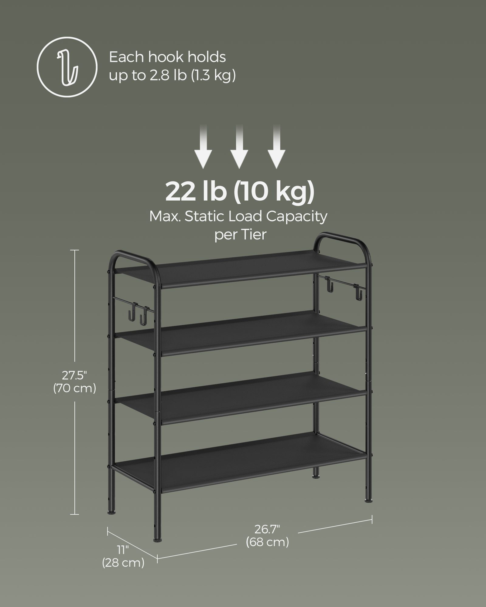 VIVNZA Shoe Rack - 4 Tier 4 Hooks Fabric Medium Sized Rack - Black